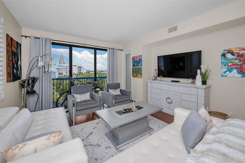 Water views and Move-in ready on the 6th floor! This unit overlooks the Intracoastal waterway with STUNNING views and GLORIOUS SUNSETS! Your new home is in the gated Belleair Country Club Golf Community with guard and key entry. The kitchen is host to decorator cabinetry,stainless steel appliances,granite counters,and extra seating at the counter for your guests. The welcoming warmth of the wood laminate in the kitchen flows into the living and dining area inviting you in. The open floor plan is EXCEPTIONAL for family and entertaining. As you relish your relaxing morning cup of coffee or delight in your end-of-day unwind,the balcony is the perfect place to take in your SERENE surroundings,TRANQUILITY of the FLOWING FOUNTAIN,and EXQUISITE SUNSETS. The En-Suite Master and second bedroom have sliders affording access to the full length balcony. Enjoy the easy access to your condo with the parking space being the first space closest to the building entry. Personal 5 X 8 storage room in garage. Large enough for bikes,kayaks,paddle boards,etc.. Walk to the Country Club/Two Golf Courses. Shopping,restaurants,Clearwater beach,Pinellas trail,Morton Plant Hospital,and much more within minutes! MLS# TB8420774