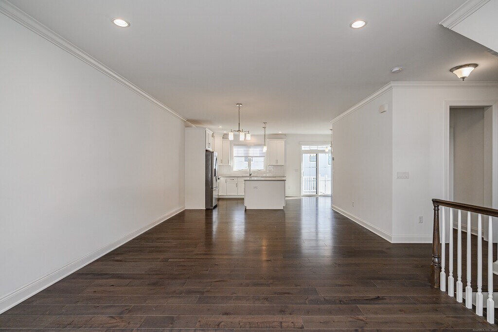 Call for Availability - This beautifully maintained townhouse offers modern living with a bright, open-concept layout and move-in-ready condition. Main level features a white kitchen with stainless steel appliances, a large granite center island with bar seating, pantry and spacious dining area. Sliders lead to a private deck overlooking the courtyard. An adjacent dining/living room combination, large windows, and a convenient half bath complete this level. Upstairs offers three generous bedrooms, all with vaulted ceilings. The primary suite includes a lavish full bath with walk-in shower and an oversized walk-in closet. A second full bath with a dual-sink vanity and tub serves the additional bedrooms. A flexible lower-level offers endless possibilities, ideal for a home office, gym, or additional living space along with storage, closet space and direct access to the one-car garage. MLS# 24140173
