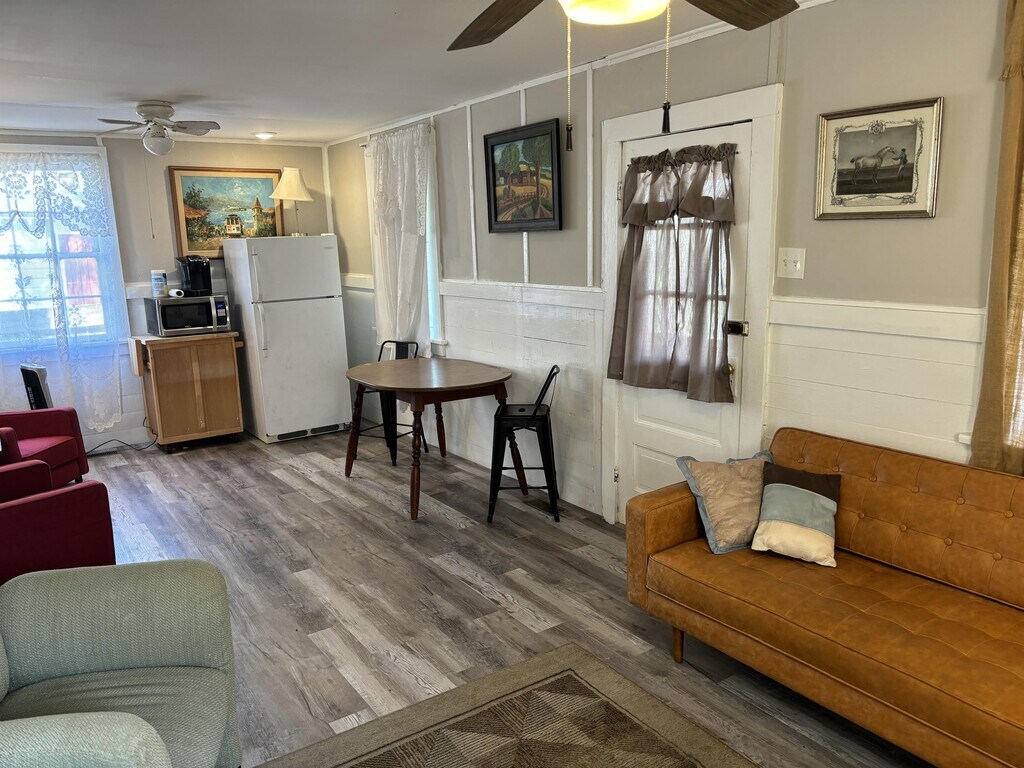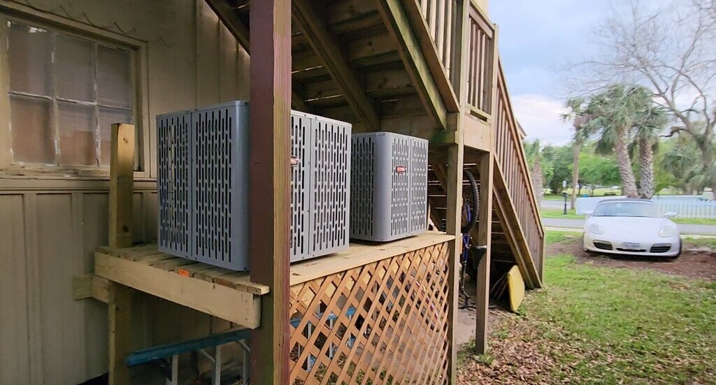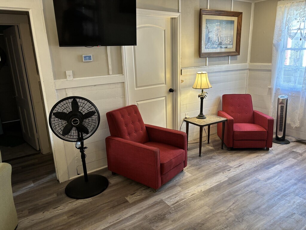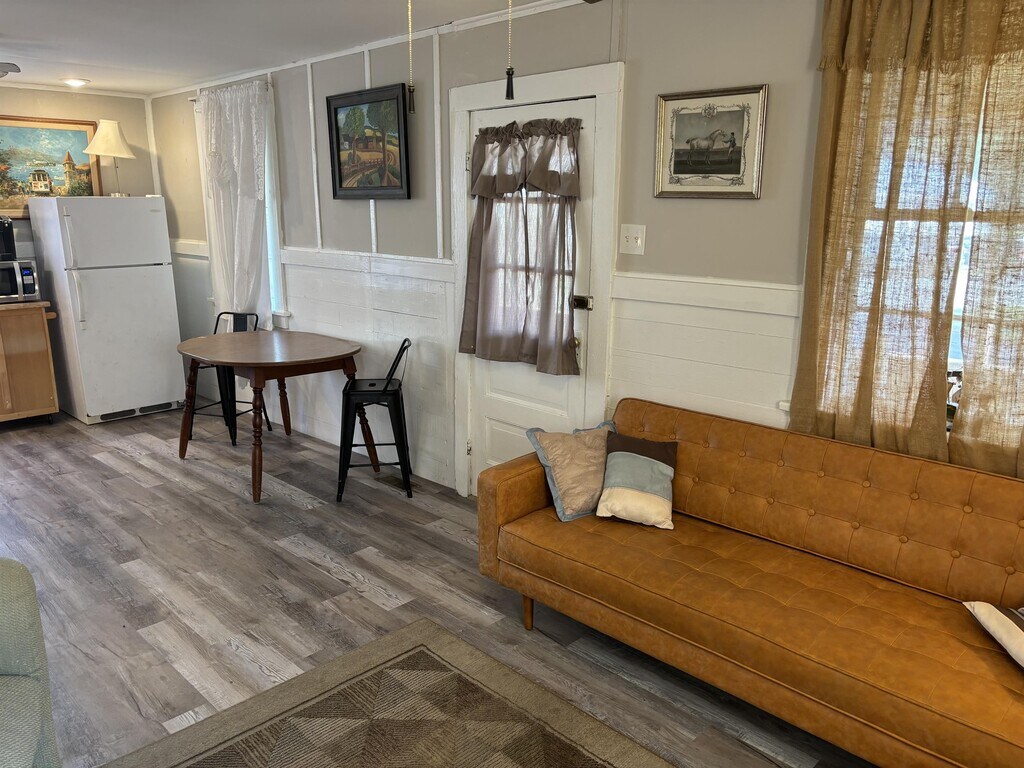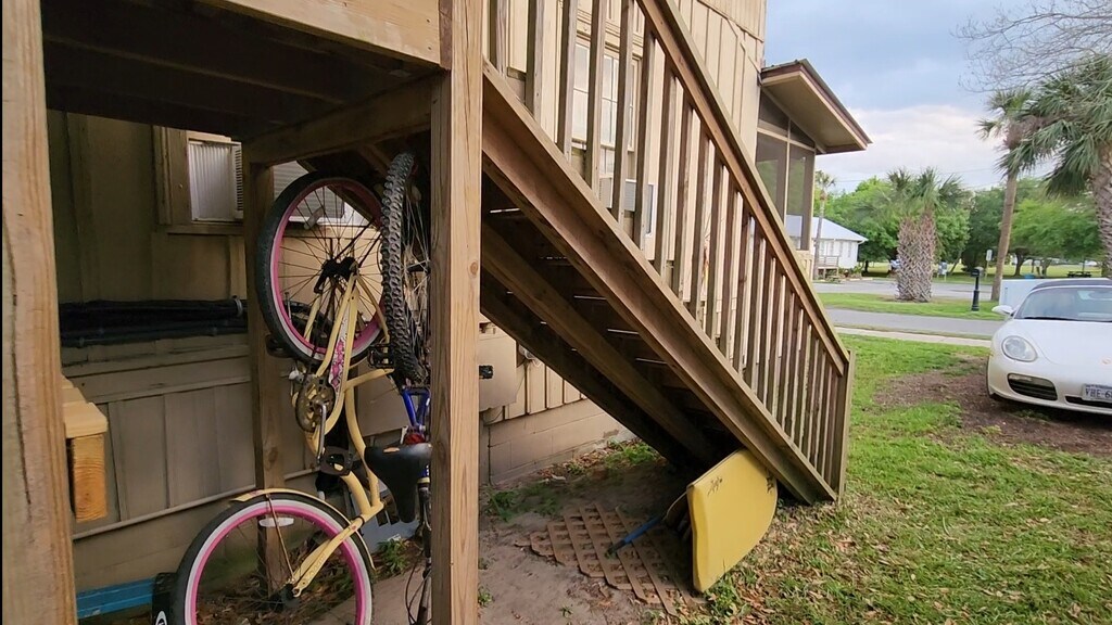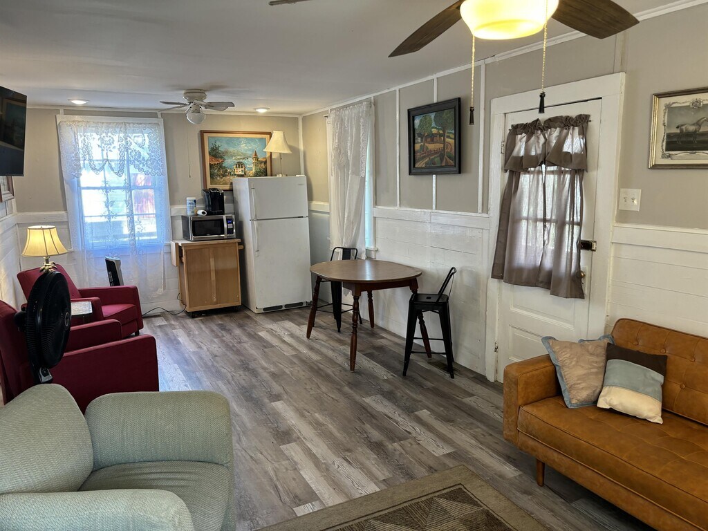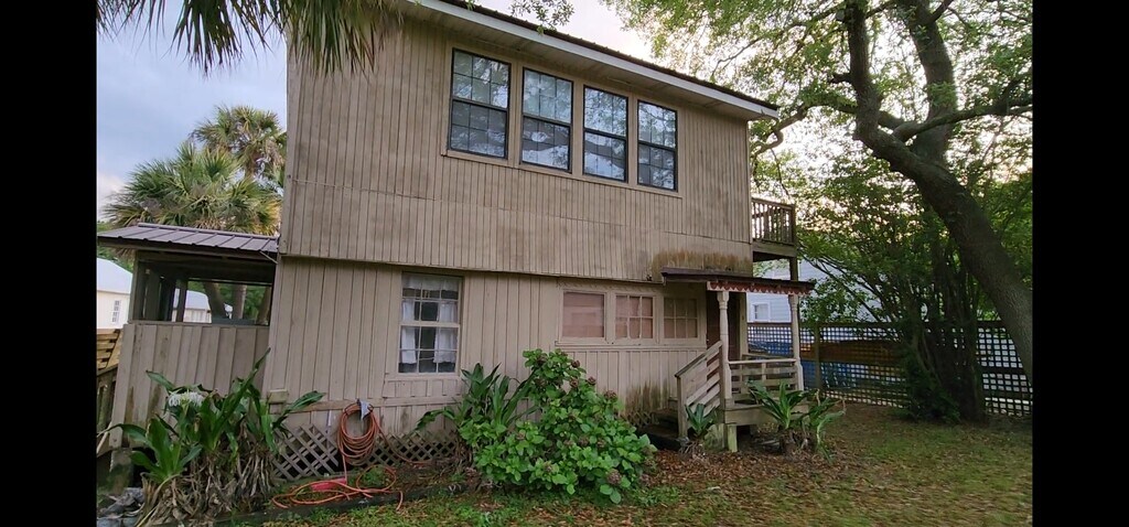 Lower unit Ft Screven Army Barracks 1910 unit at the North Beach Lighthouse next to Jaycee Park and the Tybee Fine Arts building. Screened porch over front yard looks out to the park and activity center. High activity area. Old Fort Screven Officers Row barricks house circa 1908. Tybee Island located 5 houses down from the light house beach area and restaurant. Upstairs large loft style studio with large bedroom and office area, seperate kitchen and den, new central a/c. The sliding glass door looks out to the Jaycee Park disc golf course, walking trails, and playing fields.