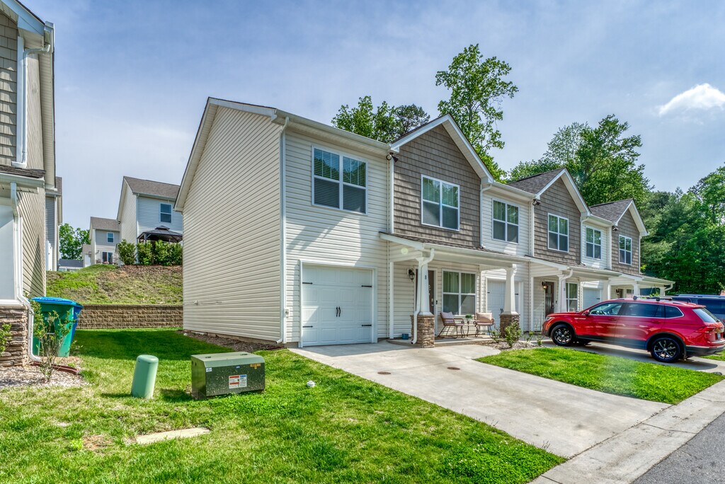 **NOT FURNISHED** Experience the pinnacle of contemporary living in this remarkable townhouse, located in The Villages at Bradley Branch, in Arden, NC! Built in 2022, this property includes many up-to-date features. As you enter this 1,375 sq ft home, you'll be welcomed by a seamlessly flowing main floor, ideal for hosting gatherings or enjoying moments of relaxation in style. The well-appointed kitchen boasts beautiful white cabinets and exquisite granite countertops. Right off the kitchen, you will find the laundry room, and half bath. This property is stocked with brand new appliances, ensuring that you will have a seamless transition from day one. Upstairs, the opulent primary suite awaits, offering a serene sanctuary with its expansive layout, full wall length closet, and dual vanity in the en-suite bathroom. Two additional bedrooms and another full bathroom upstairs provide ample space for family, guests, or a home office. Downstairs, you can securely park your car, or store your belongings in the attached one-car garage. In addition to all the townhouse has to offer, you have access to the community clubhouse. This brand-new clubhouse is perfect for hosting family and friends for a game night. You can spend your summers relaxing by the pool, or by taking in the available mountain views from the clubhouse. Conveniently located right off of Airport Rd, this property sits near a large shopping strip, multiple grocery stores, local parks, as well as the Asheville Airport. Do not miss the opportunity to make 8 Chambers Garden Dr your new home! This property will become available in the Fall of 2024. Please contact us today to experience all that this home and community has to offer! Refrigerator, stove, washer, dryer, and microwave are all included. Tenant pays utility bills. No smoking. HOA provides lawncare and outdoor maintenance, trash and recycle pickup, as well as access to the community pool and clubhouse.