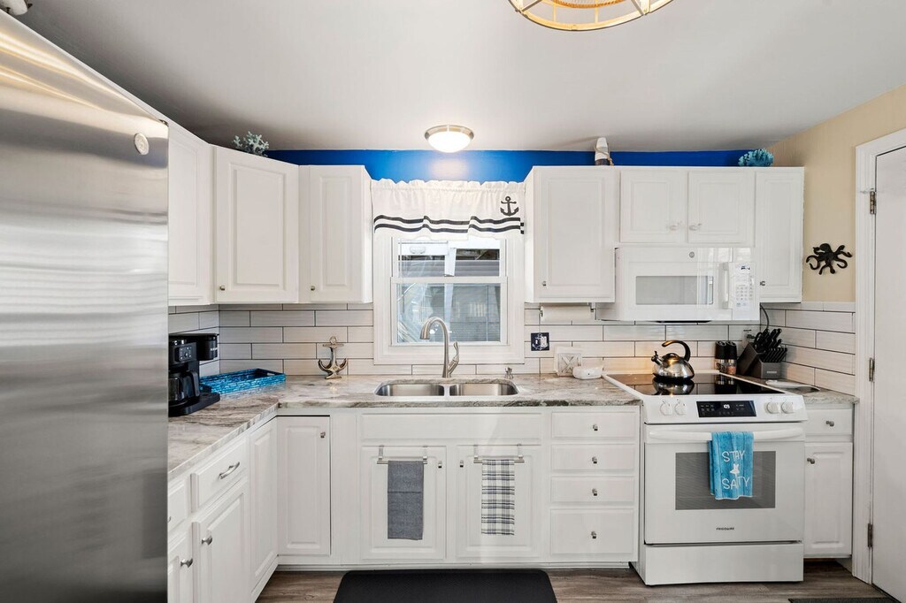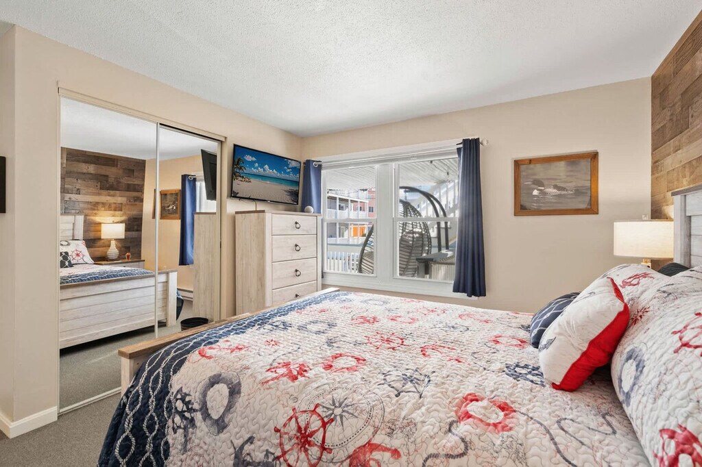 Welcome to the Shangri-La Escape, a 2-bedroom condo with 1 bath that sleeps up to 6 guests. Feel at home in this centrally located condo just outside the hustle and bustle on a quiet side street, minutes from the beach and a stone's throw from the marina. This home features an updated, fully equipped kitchen and central heating and cooling. Enjoy the private wrap-around deck with string lights, a giant Jenga set, a bar, and a nest chair. Fast Wi-Fi and coffee are provided. The living room includes a pull-out queen sleeper sofa and a smart TV. Both bedrooms have a queen bed, a storage closet, smart TVs, and clean linens. The bathroom has a shower/tub combo and clean towels are provided. There are 4 off-street parking spots available. Hampton Beach is a premier resort town in New Hampshire with activities for all ages, including nightly concerts, arcades, restaurants, mini-golf, water activities, and fireworks. It is rated among the top 3 cleanest beaches in the U.S. This condo is minutes from The Hampton Casino venue and Blue Ocean Concert Hall, and a short drive from Newburyport, MA, Portsmouth, NH, and outlet shopping in Kittery, ME. Hampton is perfectly located for a day trip to Boston, Portland, ME, and the White Mountains. Quiet hours are from 9:00 p.m. to 9:00 a.m. Please be respectful of the neighbors; no loud music is allowed at any part of the day. Absolutely no house parties and no smoking, vaping, or illegal drugs are allowed in or on the property. Guests are responsible for the safety and security of their children at all times, as well as any disturbance caused to other residents in the neighborhood. Registration Number: 105299 [SI]