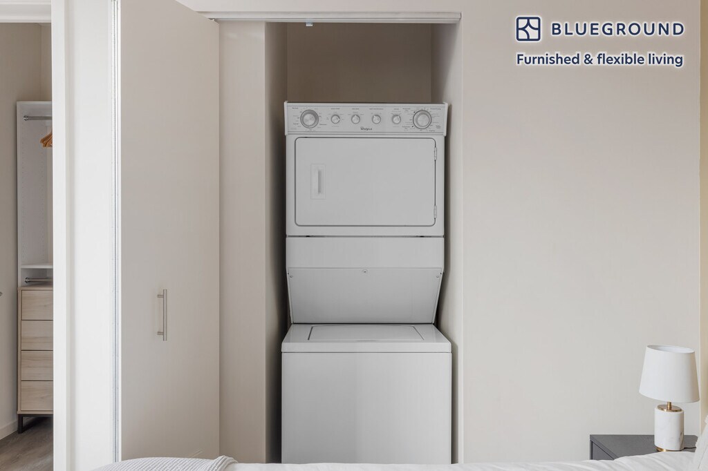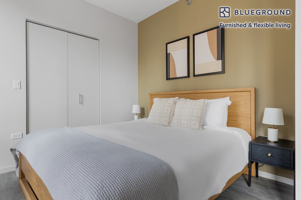 Show up and start living from day one in Chicago with this cozy one bedroom Blueground apartment. You’ll love coming home to this thoughtfully furnished, beautifully designed, and fully equipped Near North home with stunning views over the city. (ID #CHI971) The advertised rate of $1,700/month is the lowest available price, based on a 1 month(s) and 29 day(s) stay with a move-in date of November 18, 2025. If you’re looking for a 1-year stay, the rate is $2,790/month. Rates vary depending on the duration of stay, season, and other parameters. For exact pricing and additional pricing components, please visit our website and enter your desired move-in and move-out dates. The rate is applicable when billed upfront; it can be higher if billed in multiple payments. Brokers are welcome to reach out. Were you looking for an unfurnished lease? Try Blueground instead and upgrade from unfurnished to furnished living: - Furnished at rates comparable to unfurnished - No setup or furniture costs - save thousands - Move-in ready - save time, just bring your suitcase Designed with you in mind Gorgeous furniture, fully equipped kitchen, smart TV, and a premium wireless speaker are just a few of the amenities you’ll find inside this one bedroom apartment. Ideally located in Chicago, you’ll find a lot to love outside as well. When you’re ready to relax, you’ll be happy to discover every Blueground bedroom comes with superior quality mattresses, luxury linens, and cozy towels. We handle everything so you can simply show up and start living. This apartment also offers in-apartment laundry. Sleeping arrangements King Bed, 70.8in/180cm Amenities Building amenities unique to this one bedroom apartment include an on-site: - BBQ Area - Doorman - Dryer - Elevator - Swimming pool - Washing machine - Lounge - Pets allowed Arrival and ongoing support The entire apartment is yours to enjoy! Throughout your stay, you’ll have access to our Client Experience team through the Blueground App. You can schedule additional cleanings, submit maintenance requests, and view our neighborhood recommendations with just a few taps. We’ll share all details upon confirmation of your stay. Other things to note Building amenities may have an extra cost. This Blueground apartment has flexible lease options, allowing you to book it for one month, a year, or more. Pets are welcome, though weight limits and breed restrictions apply and may incur fees. We take great pride in ensuring every photo displayed is shot in our own units with our actual furnishings. That said, we regularly refresh our decor and furniture arrangement, which may differ from what’s pictured. [SI]