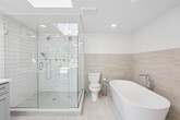 Call for Availability - Beautiful Cape-Cod style home set on a desirable, tree-lined street in a prime location. This newly renovated home features a gorgeous kitchen w/ upscale appliances, ample seating for at least 4-5 at the island and open floor plan- perfect for entertaining and everyday living. The kitchen opens to a large family room w/ recessed lighting, large bay window with views of the front yard & wood burning fireplace, perfect for cozy nights. The light-filled dining area w/ exposed brick fireplace, new skylights, and built in shelves provides charm & character. The main level provides 3 bedrooms and full bath for easy one level living. The second level boasts the large primary bedroom with ample closet space, and gorgeous new master bathroom featuring a large walk-in glass enclosed shower, double vanity, high end fixtures and modern tile - a serene space to unwind and relax. Freshly painted interior and exterior, new light wide plank hardwood flooring, updated lighting and central AC provide comfort all year long. MLS# 24122966