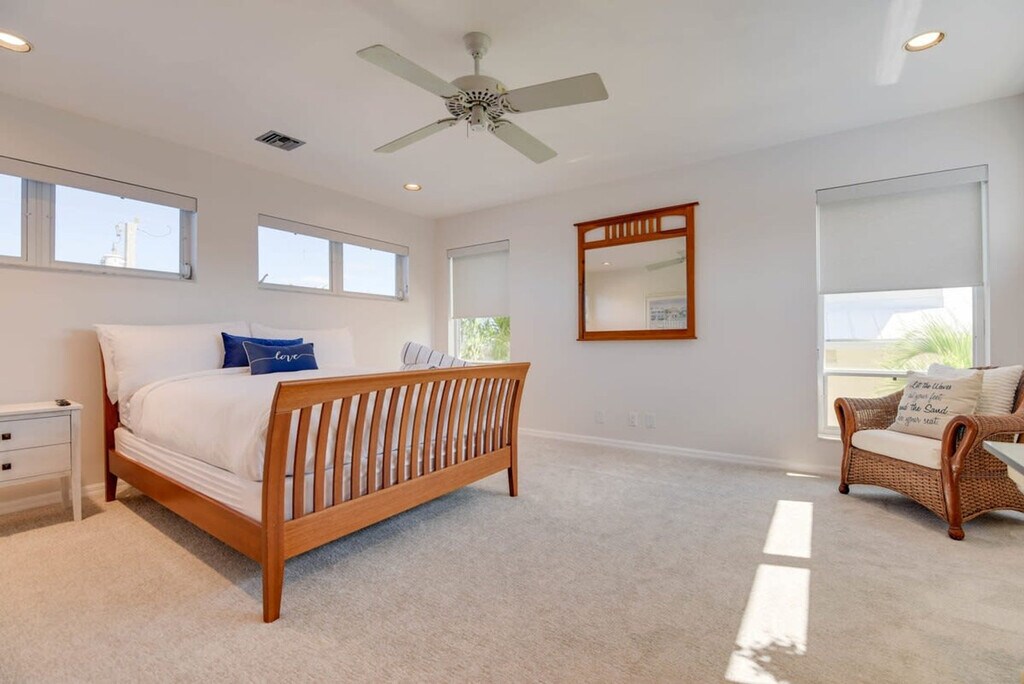 The Haven House is a truly heavenly retreat nestled on the quiet residential canals in Key Haven. This home boasts a modern waterfront private backyard with a dock and boat lift. With space-maximizing and luxury island touches from top to bottom, this monthly rental has it all. Stay just 15 minutes from downtown Duval Street in this one-of-a-kind island home. Seamless indoor-outdoor entertainment is made easy with the open-concept floor plan and inviting features at the Haven House. With an indoor tiki bar, sectional couch, and bay doors that lead to the back deck, the home is flooded with natural light for a true Florida Keys feel. This 3-bedroom bungalow includes 1 king-size bed and 2 queen-size beds. It also includes three full bathrooms. Private washer and dryer are available. There is a 28-night minimum stay requirement. Located less than one mile from Key West and all of its famous attractions in a family-style neighborhood. There is a local park within walking distance to spend time with your family and friends. Rent a boat for the day out of Stock Rock Café at Cow Key Marina and embrace island time or catch a kayak tour out of Lazy Dog in Stock Island. Enjoy locals’ favorite restaurants like Hogfish Grill, Roostica, or Chicos Cantina. Take a trip to Hurricane Hole for happy hour or head downtown for some of the best seafood. Travel by car, boat, or plane to this luxury estate. The driveway allows parking for up to 2 vehicles. If you didn’t travel by water, you can also drop your boat at one of the public boat ramps in Key Haven or Stock Island. Rent a golf cart, scooter, moke, or bike for the day to explore the area. Damages to the property or additional cleaning due to excessive mess are subject to charges.