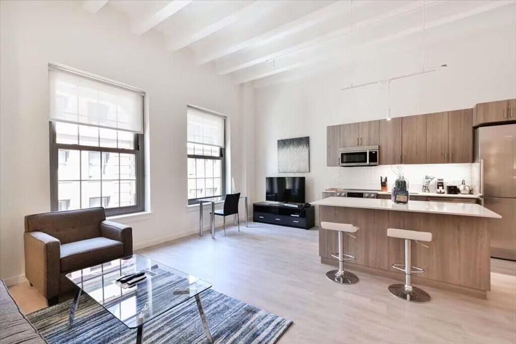The advertised rate of $4,739/month is the lowest available price, based on a 30 day(s) stay with a move-in date of March 23, 2026. Rates vary depending on the duration of stay, season, and other parameters. For exact pricing and additional pricing components, please visit our website and enter your desired move-in and move-out dates. The rate is applicable when billed upfront; it can be higher if billed in multiple payments. This gorgeous condo is located just a couple of blocks from Boston Common and Chinatown, making it the perfect home base for any trip to Boston. With luxurious decor, high ceilings, and large windows, this modern apartment offers a unique blend of historic architecture and a fully renovated interior. Enjoy the convenience of a hotel-style lobby and 24-hour concierge service, ensuring you feel at home from the moment you arrive. The condo features a modern kitchen with stainless steel appliances, including an electric range, microwave, and dishwasher. The cabinets are stocked with dishes, cutlery, and cookware, making it easy to whip up a home-cooked meal. The living room is designed for relaxation, with a large flat-screen TV, comfy couches, and soothing artwork on the walls. Bedrooms include colorful artwork, crisp bedding, and large windows that let in plenty of morning sunlight. The bathroom boasts contemporary fixtures, including a luxe glass-walled shower and drawers for storage, with fluffy towels and toiletries provided for your convenience. The building offers a range of swanky facilities, including a stunning lobby, a business center, and 24-hour concierge service. Additionally, the apartment includes a washer and dryer, high-speed wireless internet, and linens and towels for your convenience. Nestled in the vibrant Theater District, this condo is surrounded by the best arts venues in town. Its fantastic location between Chinatown and Boston Common makes it a great place to rest and relax between adventures around the city. Enjoy easy access to the latest sell-out shows, authentic New England chowder, and the rich cultural experiences Boston has to offer. This charming apartment provides a peaceful, quiet oasis amidst the bustling city, ensuring you have a restful stay. Check-in and check-out times are flexible to accommodate your schedule. The condo is equipped with high-speed wireless internet, making it ideal for remote work or streaming your favorite shows. A laptop computer is not included. [GO]