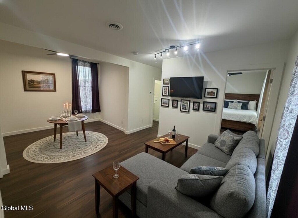 FOR RENT: 1 bedroom + den/office with stackable washer & dryer. This 2nd floor apartment offers new flooring,new lighting,freshly painted,new bathroom with a shower/tub unit,stackable washer & dryer in the office/nursery room & newer kitchen w/ gas stove. The good size living room also has an eating area. See pictures for Virtual staged photos for potential setup/decorative ideas. The deck overlooks great views of Albany. OFF STREET PARKING FOR 2 CARS. Sellers require credit and background check through rentspree (ask your agent to send a link). Just steps from the Rensselaer Train Station,this fantastic brick two-family home offers convenience & comfort. If the cost of homeowners insurance is affected because of a pet,that will be at the annual expense of the tenant to be determined after questionnaire is filled out by the potential tenant to the homeowners insurance company. MLS ID 202613310