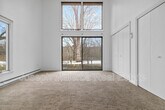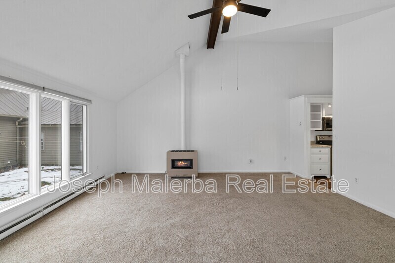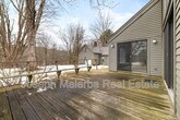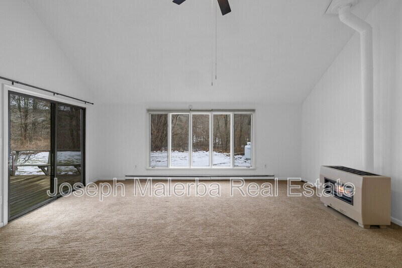 Set in a peaceful, wooded setting, this spacious home offers a thoughtful layout designed for both comfort and flexibility. The main living area features vaulted ceilings, exposed beam detail, and oversized windows that fill the space with natural light, creating an open and inviting atmosphere. A separate family room provides additional living space—ideal for relaxing, entertaining, or working from home. The home offers three well-proportioned bedrooms, including a primary bedroom with nearby full bath, along with additional bedrooms that allow for guest space, office use, or flexible living arrangements. A bright sunroom extends the living area and offers a quiet spot to enjoy views of the surrounding landscape year-round. The dining room flows naturally to the outdoor patio and deck, creating an easy indoor-outdoor connection. The kitchen is equipped with white cabinetry, granite countertops, and stainless steel appliances, while a dedicated laundry area adds everyday convenience. Neutral finishes and carpeting throughout provide a clean, move-in-ready feel. Multiple living zones, generous room sizes, and a private setting make this home both comfortable and functional.