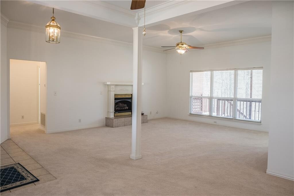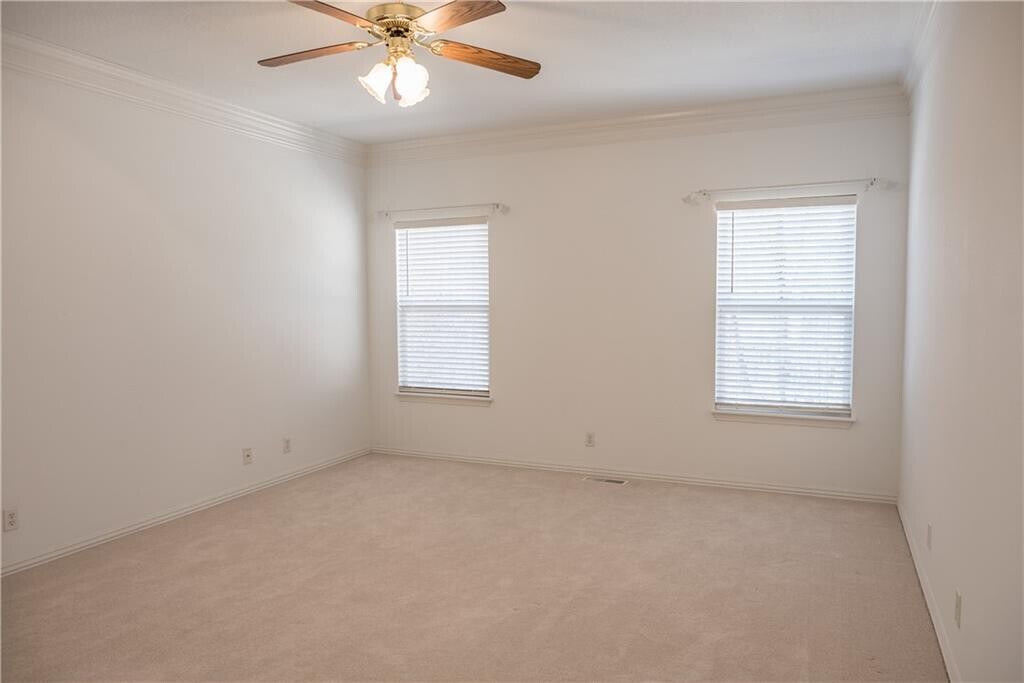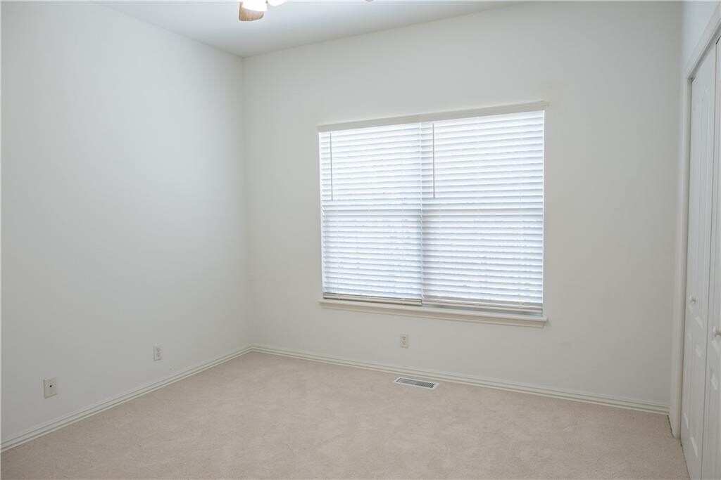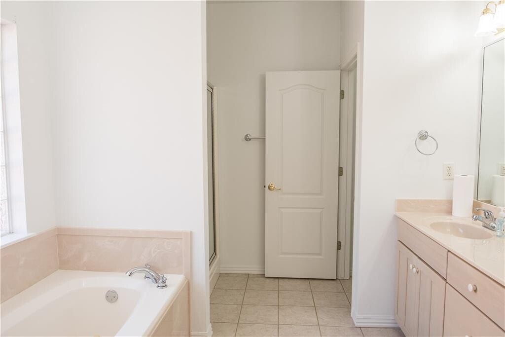 This 3 bedroom, 2 bath split floor plan is in a perfect location to enjoy the amenities of Bella Vista! Convenient to Metfield, trails and park! Beautiful view off of the large covered back deck. Multiple large windows makes this home very bright and airy. Spacious kitchen with eat in dining room. Primary bedroom has an extra space for a computer room. Large walk in closet, whirlpool tub and double sinks. Easy access stairs in the garage. Plenty of storage! Refrigerator, washer dryer are provided. Lawn care is provided. MLS# 1330422