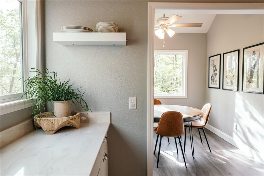 Fully furnished home on Lake Norwood! Located in the heart of the Bella Vista Back 40 Trail, a 5 minute walk to Lake Norwood, Town Center and Cooper Chapel! This beautifully decorated, perfectly appointed home nestled in the forest of Bella Vista makes all those childhood dreams of living in a treehouse come alive. Designed with relaxed textures and a modern artisan style that brings the outdoors inside. Three bedrooms, two full bathrooms, with plenty of basement storage for your bike gear and extras! Four parking spaces provided, including one covered. Third bedroom is a loft with partial wall open to downstairs. Owner/Agent. MLS# 1330072