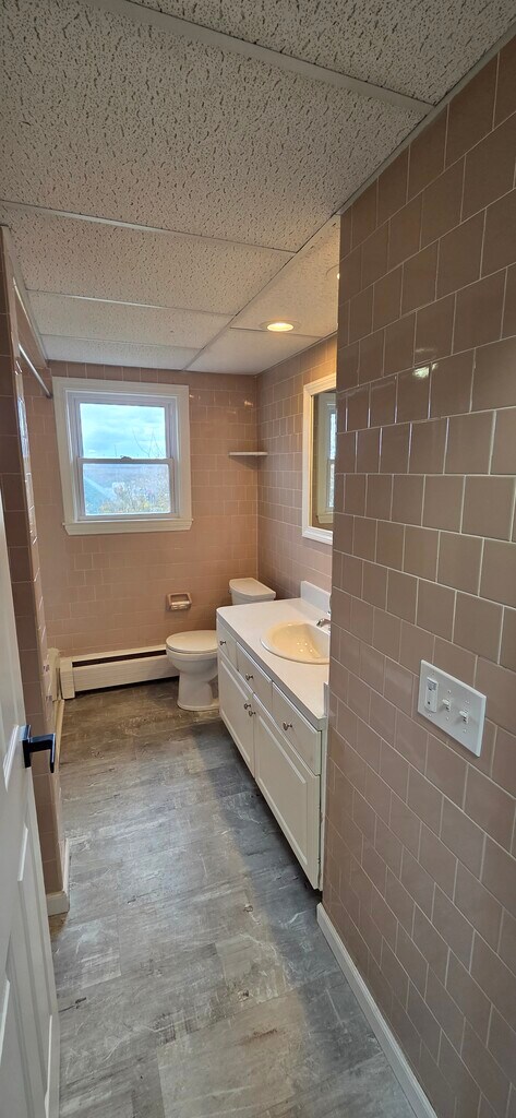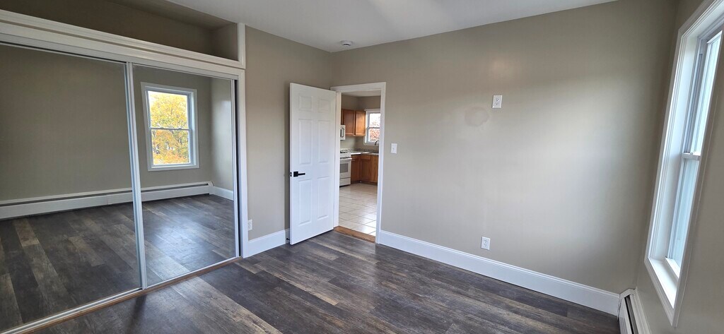 This unit offers easy access to the highway, a spacious floor plan, dedicated coin-ops and off-street parking. The unit includes: a large kitchen with dining nook, a modest living room with ample amount of natural light, a wonderful bathroom with two small storage closets located just outside, and three good sized bedrooms. The master bedroom also features a large 7+ foot wide closet along with an overhead storage space.The unit has all brand new windows and doors among many other newly added upgrades including gas heat. So now you wont have the added hassle of oil or the expense of electric.