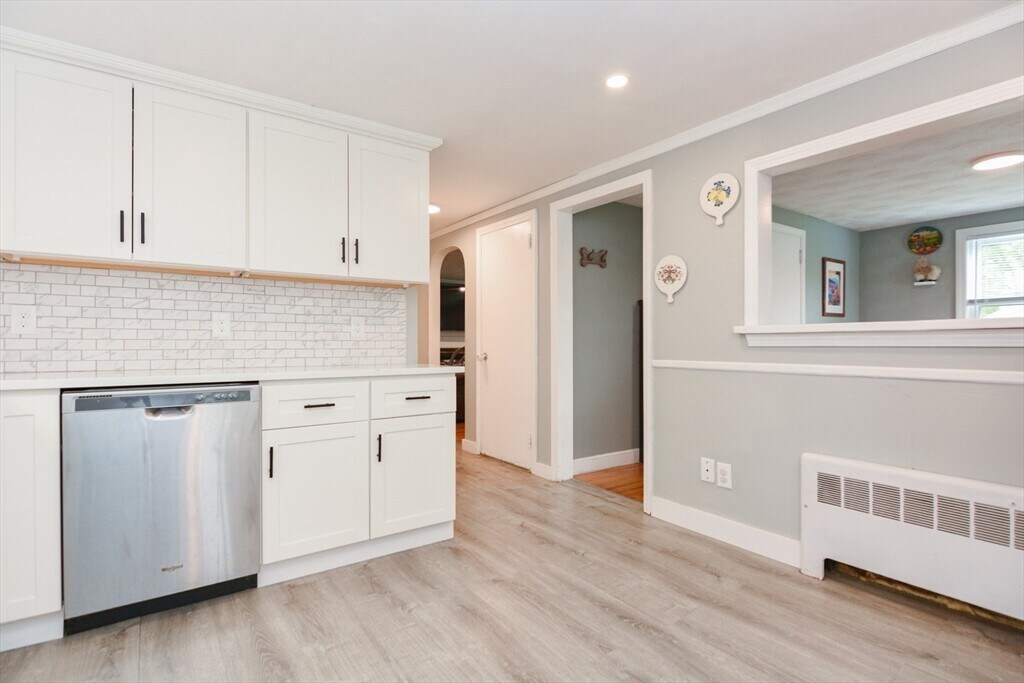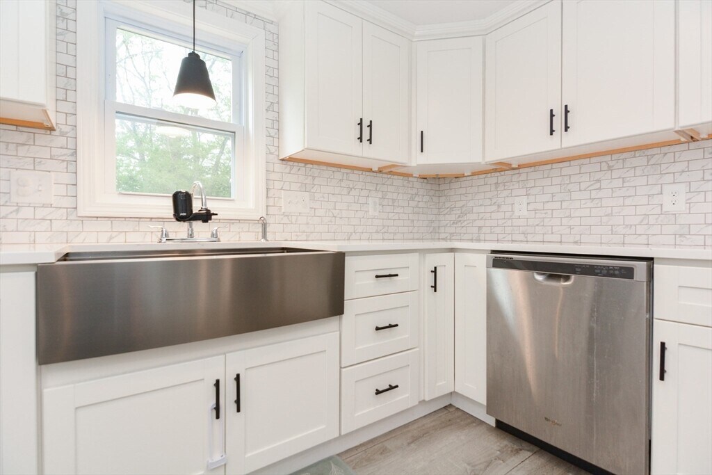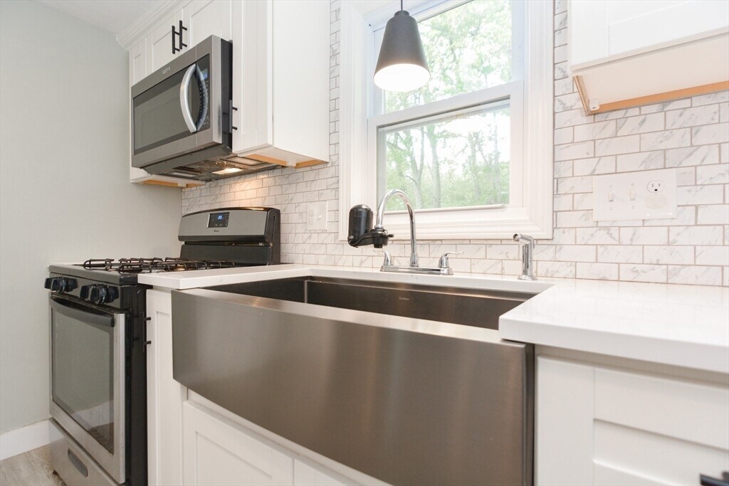 Welcome to 8 Roberts Road,where modern comfort meets easy living in one of Ashland’s more desirable neighborhoods. This updated Cape blends classic charm with today’s convenience and style. Enjoy a bright open layout with a modern kitchen featuring quartz counters,white cabinetry,and soft-close drawers flowing into a dining area and sun-filled living room with cozy fireplace. The first floor offers a flexible bedroom or home office and full bath,while upstairs includes two spacious bedrooms and a remodeled bathroom. Hardwood floors add warmth,and the private fenced backyard with shed is perfect for relaxing or entertaining. Major updates include high-efficiency mini splits (2024),new vinyl windows,hot water heater,septic system,repointed chimney,and solar panels to lower utility costs. Convenient to Framingham commuter rail,Routes 9,495,and the Pike— Tenant to have excellent credit and references. Month to month tenancy available. MLS# 73455263