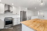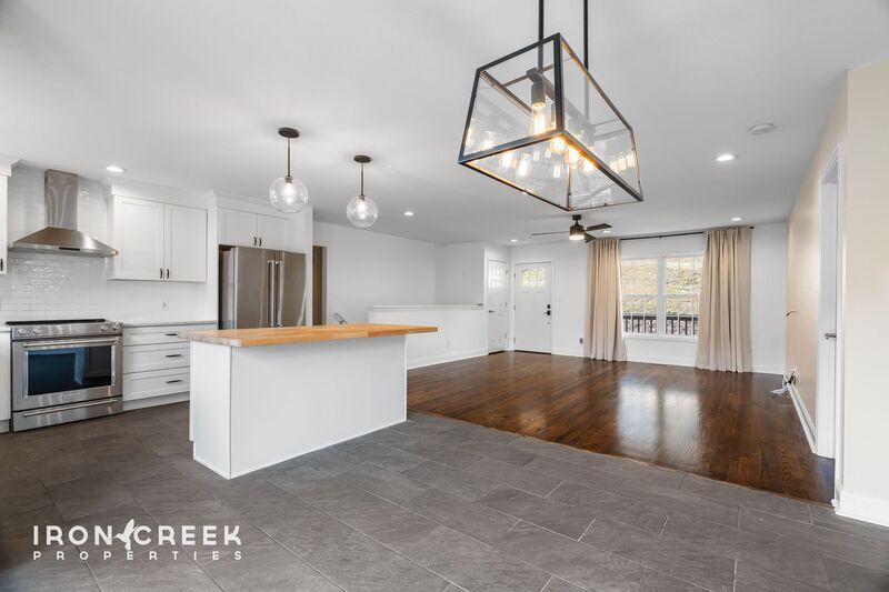 Enjoy elevated living in this three bedroom, three bathroom home on Rose Briar Circle in Weaverville. Mountain views from the deck provide a peaceful backdrop for your morning coffee, while the interior spaces balance style and comfort throughout over two thousand square feet of thoughtfully designed living area. The updated kitchen serves as the heart of the home with white cabinetry, quartz countertops, and white subway tile backsplash. An island with butcher block top provides additional workspace and casual dining options. The kitchen is outfitted with stainless steel appliances including a French door refrigerator with ice maker, microwave, built-in dishwasher, electric range, and garbage disposal. Hardwood flooring flows through the main level living spaces, while tile adds durability in the kitchen and bathrooms. The primary suite features a soaking tub for relaxation. Two additional bedrooms provide flexibility for your household needs. The finished basement extends your living space with a wet bar for entertaining and LVP flooring throughout. Please note the gas log fireplace in the basement is not for tenant use. Central air and heat maintain comfort year-round, and a washer and dryer are included for convenience. Parking includes both garage and driveway space. The spacious deck provides outdoor living and entertaining space with mountain vistas framing the backdrop. Located in Weaverville with convenient access to the Asheville metro area and served by Buncombe County Schools. Tenant pays all utilities. Landscaping and lawn maintenance are included in the rent and provided via BuckTom. This property accepts dogs, up to two (2), with refundable $250 deposit per dog. Sorry, this property is not cat-friendly and does not accept co-signers.
