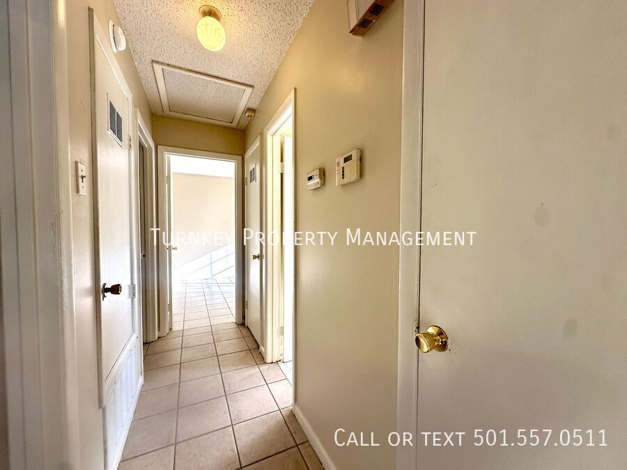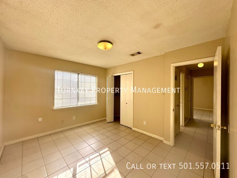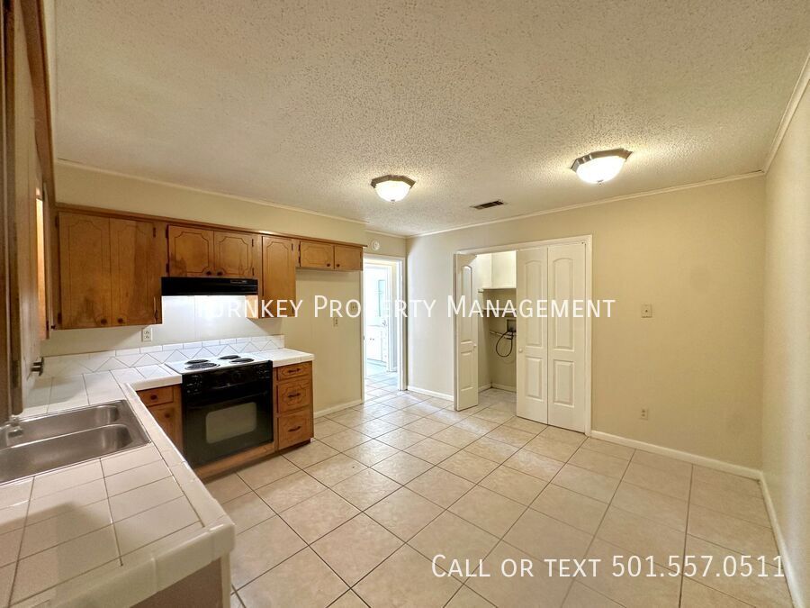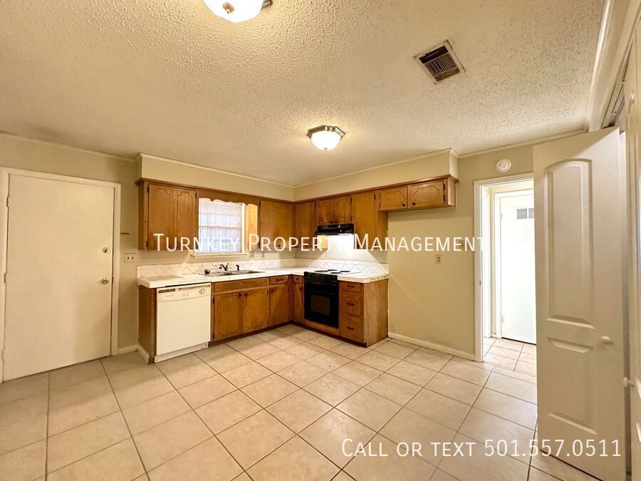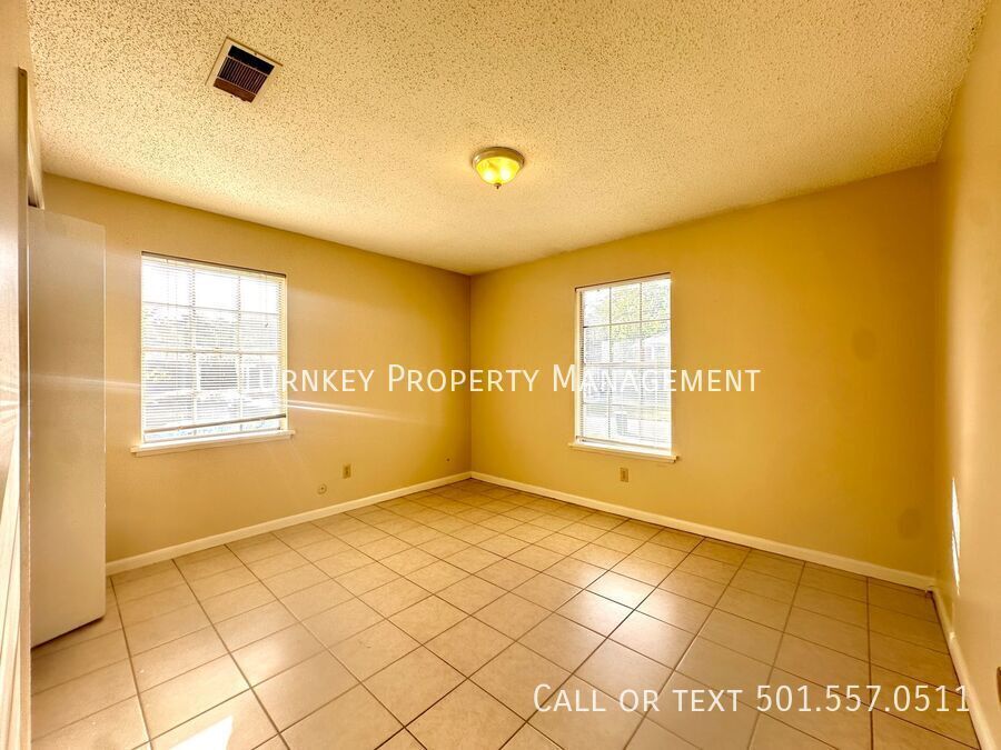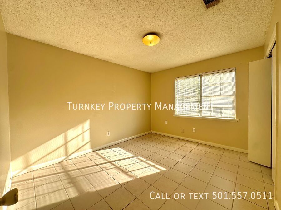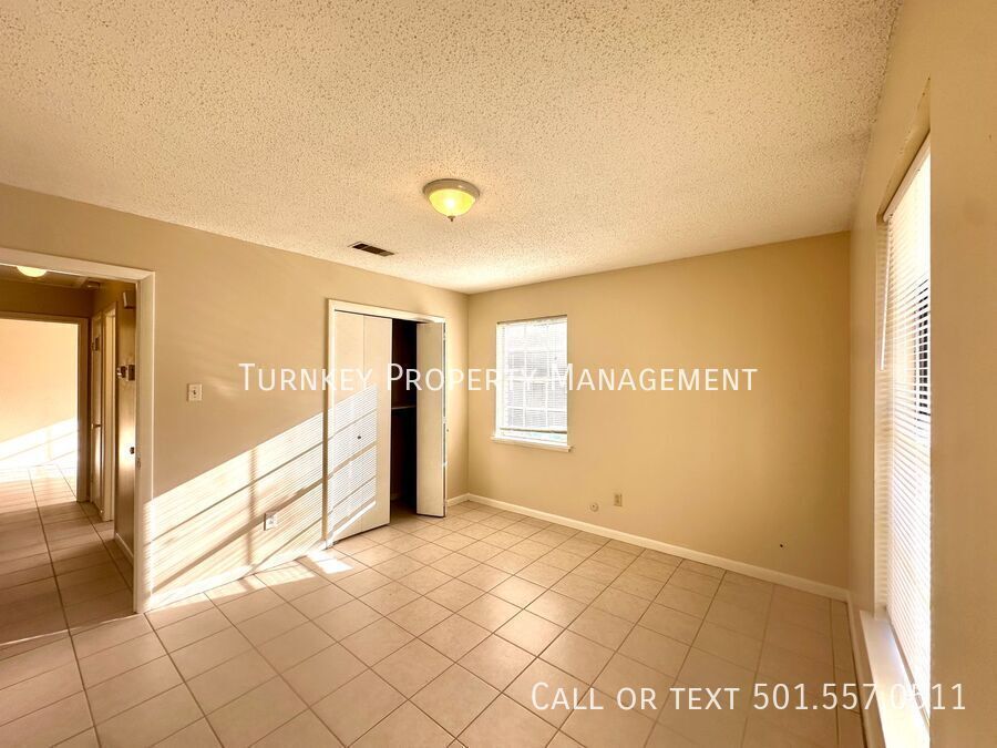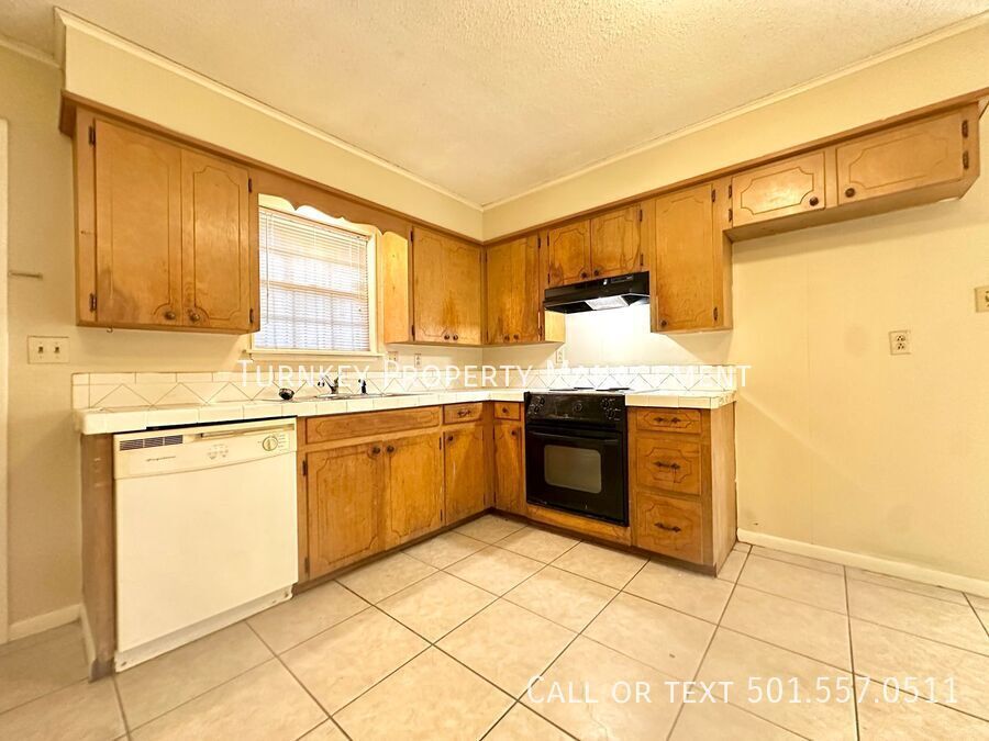 Cozy 2-bedroom, 1-bath. Features include tile flooring throughout, a spacious primary bedroom, and a kitchen with wood cabinetry, white appliances, and a tiled backsplash. Large windows provide great natural light, and the neutral color palette makes it easy to personalize. Located in Little Rock, this low-maintenance home is move-in ready and adaptable to any lifestyle. Pets Allowed Stove Views