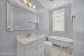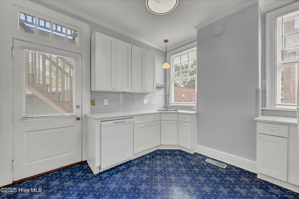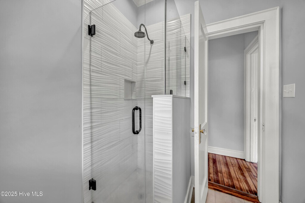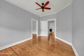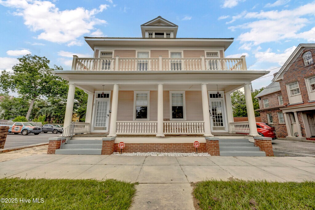 Welcome to the downstairs unit of the historical Ahrens House, located in Historic Downtown Wilmington. It is within walking distance to the Cape Fear River and the Soda Pop District. This beautiful home with a covered front porch features high ceilings, antique hardwood flooring, optional alarm system and generous size rooms. Enter into the large living room that features a decorative fireplace and ample natural lighting. Entering the hallway, you will find the laundry closet with full size stack washer and dryer. The primary bedroom also features a decorative fireplace and an ensuite bath with tile flooring, upgraded vanity, built ins, and a claw foot tub/shower combo. The other 3 oversized bedrooms, two of which have an adjoining door are bright and sunny. The kitchen is equipped with granite countertops, tile backsplash, matching white appliances and an access door to the back deck. Just off the kitchen is the secondary bathroom that features tile flooring and a walk-in shower. There is access to an additional secured storage room located in the basement of this home. Parking lot is not included with this rental. Street parking is located on S 7th and Market St. No smoking. Cats are permitted with non-refundable pet fee.