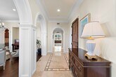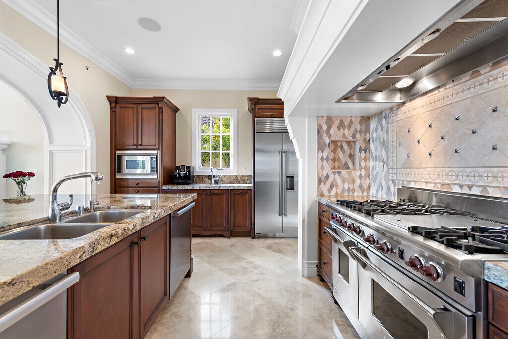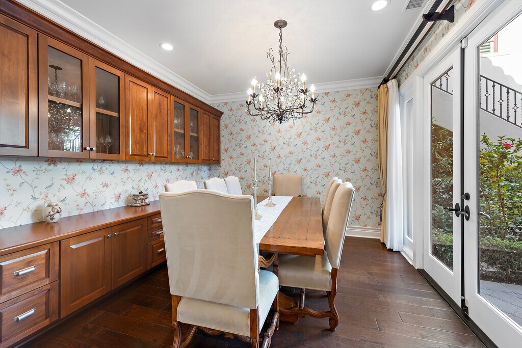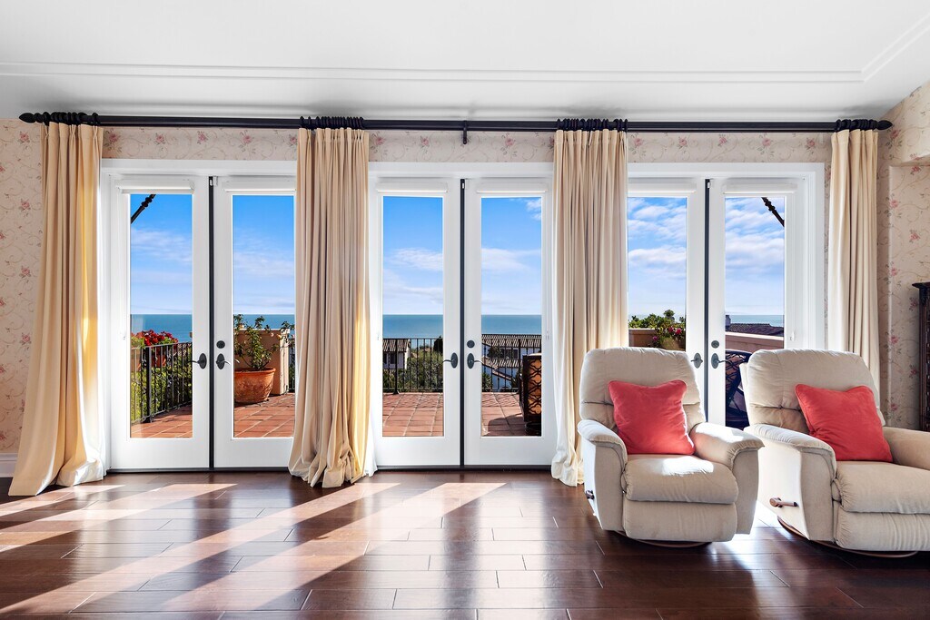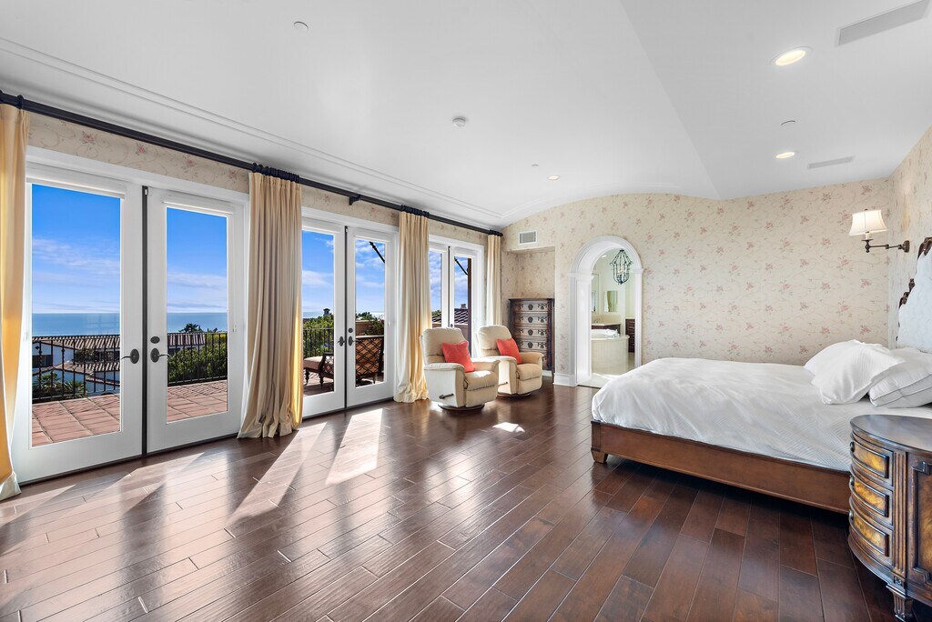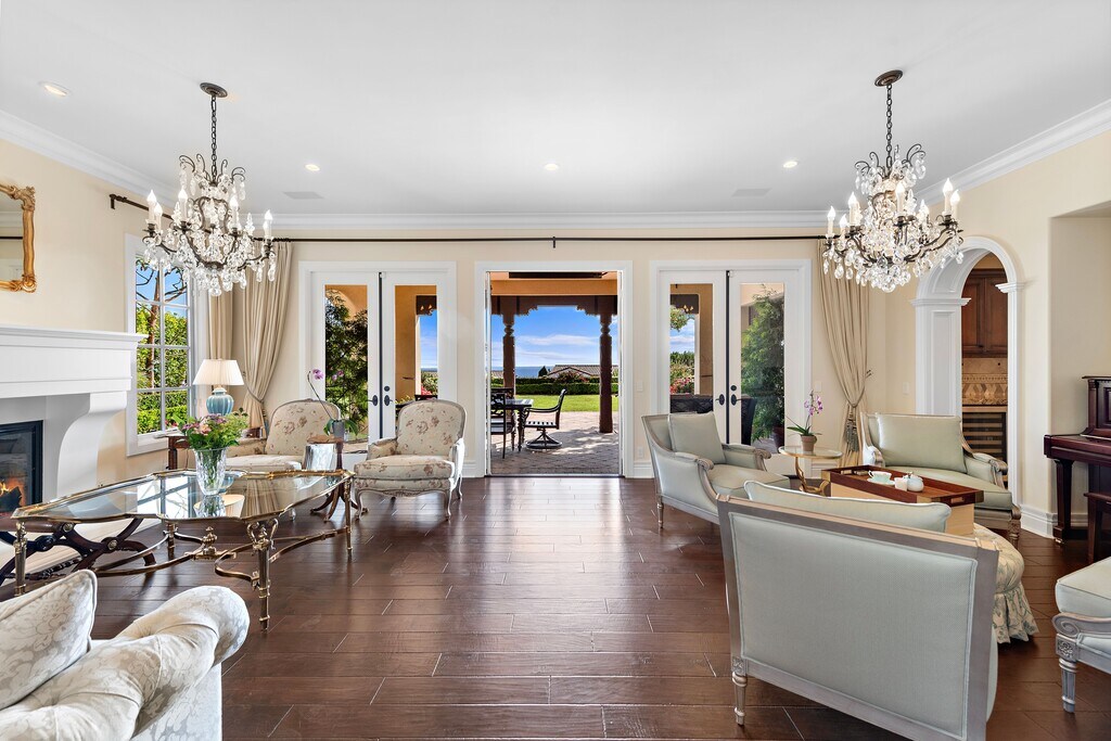 Perched above the Pacific in Newport Coast’s prestigious Crystal Cove, this Mediterranean-inspired estate offers sweeping views of Catalina Island, El Morro Cove, and Abalone Point. Set on an expansive 11,077 (+/-) sq ft lot, the home spans 5,082 (+/-) sq ft of refined living space designed to embrace coastal beauty at every turn. Beyond a private gated courtyard, the residence welcomes you with wood-beamed ceilings, distressed walnut floors, and European tile floors, blending timeless elegance with relaxed sophistication. The formal living room features a precast fireplace, custom crystal chandeliers, and opens to a heated, covered loggia—perfect for enjoying ocean sunsets year-round. The chef’s kitchen is fully equipped with top-tier appliances, granite countertops, two dishwashers, a prep island, and a separate catering kitchen. An open-concept layout connects seamlessly to the family room and breakfast nook, all framed by panoramic ocean views. The primary suite is a peaceful retreat with French doors opening to a stunning, private ocean view terrace and a spa-inspired bath featuring a jetted tub, large walk-in shower, and dual walk-in closets. The thoughtful floor plan includes a dual-desk upstairs office and four bedrooms, five bathrooms, inclusive of a separate guest casita with private entrance—ideal for visitors or multigenerational living. Enjoy a manicured lawn with plenty of room for relaxation and recreation, a 3-car garage with built-in storage, a built-in audio system, and ADT Security installed on all doors and windows. Living in Crystal Cove means more than enjoying an extraordinary home—it’s access to a world-class lifestyle. Residents enjoy a heightened level of privacy, prestige, and 24-hour guard-gated security along with exclusive amenities at The Canyon Club, including a resort-style pool, spa, fitness center, and sport courts. Private beach access, miles of scenic trails, and proximity to Laguna Beach, Newport Beach, and upscale shopping and dining at Fashion Island make this one of the most desirable communities on the California coast.