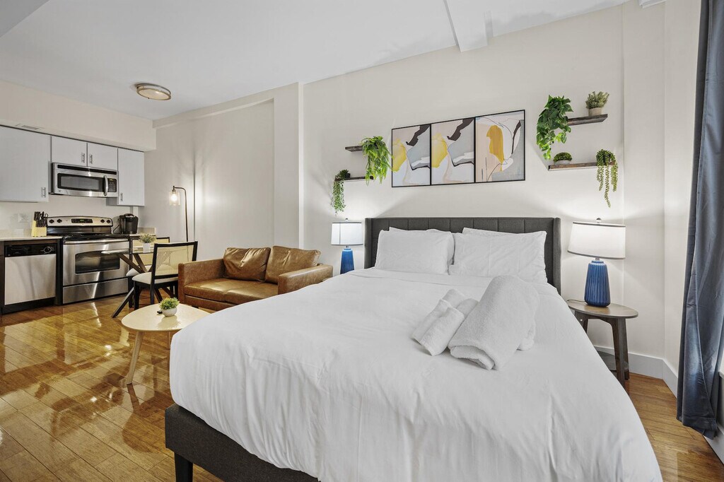 The advertised rate of $3,556/month is the lowest available price, based on a 1 month(s) and 2 day(s) stay with a move-in date of February 19, 2026. Rates vary depending on the duration of stay, season, and other parameters. For exact pricing and additional pricing components, please visit our website and enter your desired move-in and move-out dates. The rate is applicable when billed upfront; it can be higher if billed in multiple payments. Feel at home in this studio apartment located in Boston's Downtown Crossing area on a pedestrian-only street. The closest vehicle access point is a two-minute walk away. This apartment has a maximum occupancy of two guests. This apartment features a fully equipped kitchen and a small sofa. Laundry facilities are available in the building for an additional fee. Early check-in and late check-out until 1 PM are available for a small fee and can be requested via our portal, subject to availability if requested at the last minute. Guests are responsible for finding parking, as no parking is available on-site. Driving in Boston is not recommended as parking can be very expensive and challenging. Located in Boston's Downtown Theatre District, this apartment is steps from the Orange Line (Downtown Crossing station) and a two-minute walk to the Green Line and Red Line stations. Boston Commons Park is two minutes away. The apartment is located in a busy downtown area, and street noise is common at all hours. Pets are not allowed in the apartment. A doorbell camera is installed, and any attempt to host parties will result in immediate termination and legal action. Smoking is strictly prohibited in the apartment and the building. As part of the self-check-in process, a copy of your government-issued ID and a selfie of you holding the ID are required. The person making the reservation must be the same individual who will check in and upload the ID information through our designated form prior to check-in. Reservations will be canceled if it is discovered that the guest has a violent criminal history. You must adhere to quiet hours, and no loud music or disturbing noise is allowed, especially in the evening. Please be mindful of noise, as you will have neighbors. As with many urban areas, you may encounter homeless individuals nearby. Registration Number: C [SI]