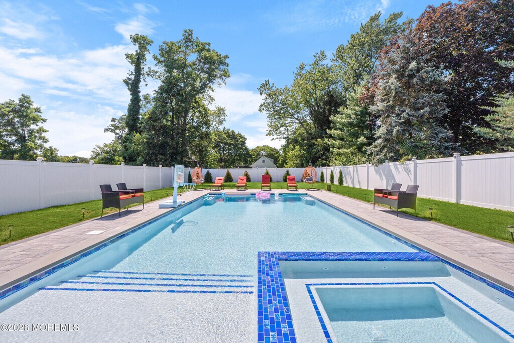 HEATED POOL + SPA SUMMER RENTAL. SUMMER 2026 vibes are already in full swing at 8 Woodrow Street in Oakhurst! This extended and fully renovated 6-bedroom home,just one step below new construction,showcases a fresh minimalist design with sleek,modern finishes throughout. The stucco-clad home features a covered front porch,bright stainless kitchen,finished basement,and a primary bedroom with full bathroom on the main level. Step outside to the ultimate summer backyard oasis featuring a brand-new heated gunite pool with built-in spa,expansive paver patio,sun deck,and a glass-surrounded Bluestone deck - perfect for entertaining or relaxing. Available now through Labor Day. Schedule your private showing today and secure your Summer 2026 rental in Oakhurst.