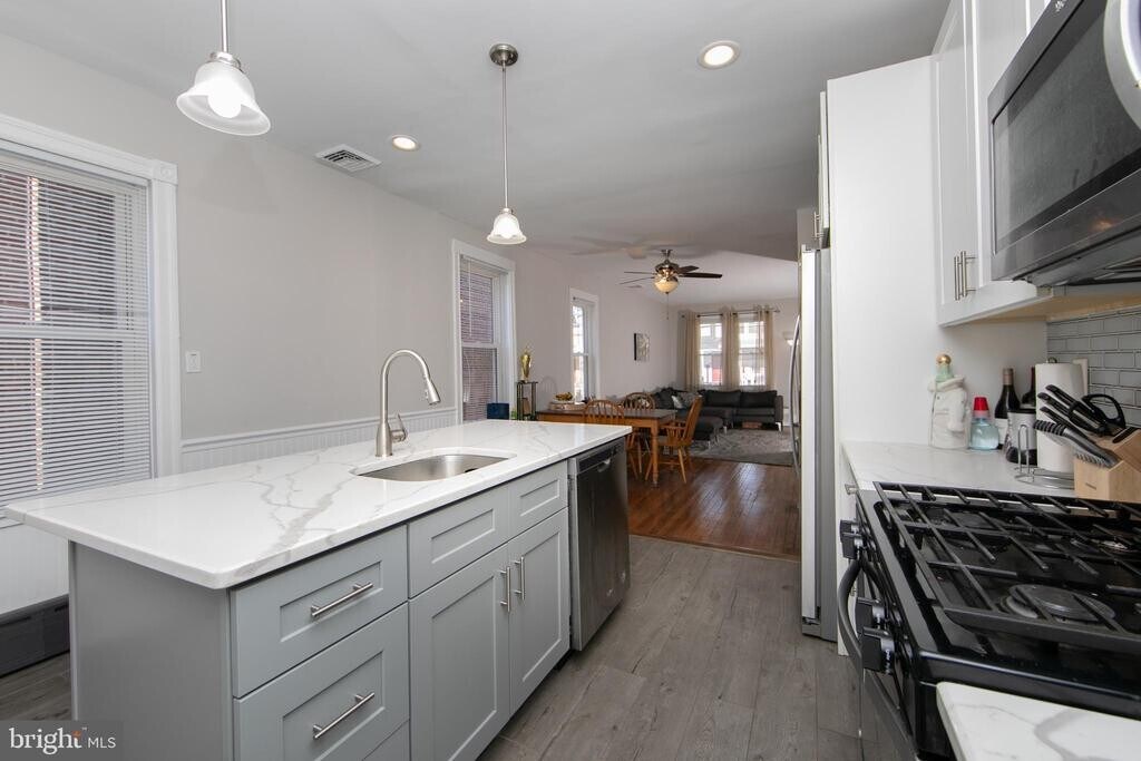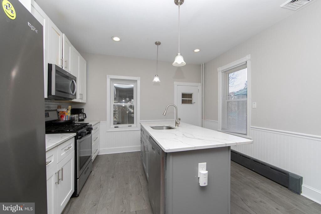 Welcome Home! Schedule your appointment today to see this 3 Bedroom, 1 Full Bathroom Twin Home now for Rent in Collingswood (Haddon Twp), NJ! Upon pulling up to the Rental Home, take notice of the 1-Car Driveway and the Covered Front Porch, a great place to relax after work. Enter into the Open Concept 1st Floor. 1st is the Living Room with Hardwood Flooring. The Dining Room sits in between the Living Room and Kitchen, which is great for entertaining, and comes with Hardwood Flooring as well. The Recently Updated Eat-In Kitchen features Wood-Like Flooring, Newer White Wood Cabinets, Beautiful Quartz Countertops, Stainless Steel Appliances, a Terrific Glass Tile Backsplash, a Chair-Rail, Wainscoting, a Big Kitchen Island with Seating for 3, and a door leading you into the 4x12 Mudroom. The 2nd Floor comes with 3 Bedrooms and the Full Bathroom. All 3 Bedrooms come with Hardwood Flooring, a Closet, and a Ceiling Fan/Light Fixture. Your Full Bathroom boasts a Shower/Tub with Tile Surround, Wood-Like Flooring, and a Nice Sink/Vanity. This home also comes with an unfinished basement with a Laundry Area with a Washer and a Dryer, plenty of space for storage, Central Air, and comes with good backyard space. Enjoy being conveniently located close to the Patco Westmont Train Station, Great Restaurants, Shopping, Highways, and more. Don't miss the opportunity to rent this home today. No pets/animals and no smoking permitted.