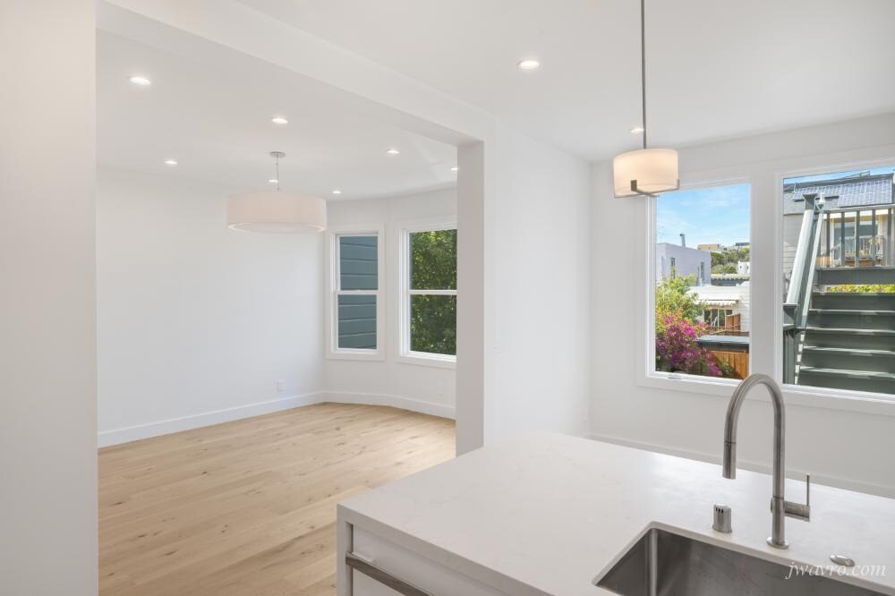 This two-level luxury apartment has been fully remodeled from the studs up to the highest standards. Ideally located at 28th and Dolores Streets in Noe Valley, it’s just one block from Church Street and close to fantastic neighborhood favorites such as Front Porch, La Ciccia, Eric’s Restaurant, and Mitchell’s Ice Cream. The Saturday Farmer’s Market and Whole Foods on 24th Street are within easy walking distance. You’ll also be near the famous Slow Sanchez Street, perfect for relaxed walks and bike rides. Tech shuttles, public transportation, and the J Church line are only a block or two away, with convenient access to Highway 101 and 280 for commuting to South San Francisco, Palo Alto, and Mountain View.Apartment Features~ Completely remodeled in 2021 with top-quality finishes~ Spacious two-level layout offering over 1,800 square feet of living space~ Beautiful first-floor unit in a two-unit building~ Gourmet open-plan kitchen with stainless steel appliances, gas stove, dishwasher, refrigerator, and breakfast bar~ Expansive living and dining area with garden views~ Two large bedrooms on the first floor with generous closet space~ Stylish shared bathroom with luxury finishes on the first floor~ Private primary suite located downstairs, opening to a serene backyard~ Hardwood floors, high ceilings, and LED lighting throughout~ Two full bathrooms in total~ Beautifully landscaped private backyard and garden with deck and cabana~ One parking space in the attached garage included (space is tight at approximately six feet wide; prospective tenants should test fit before signing lease)~ Direct access from the garage into the apartment~ All utilities are the tenants responsibility