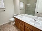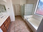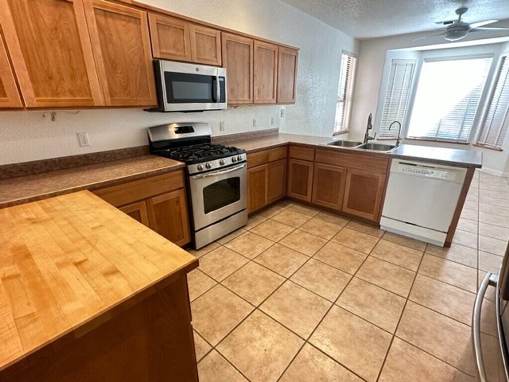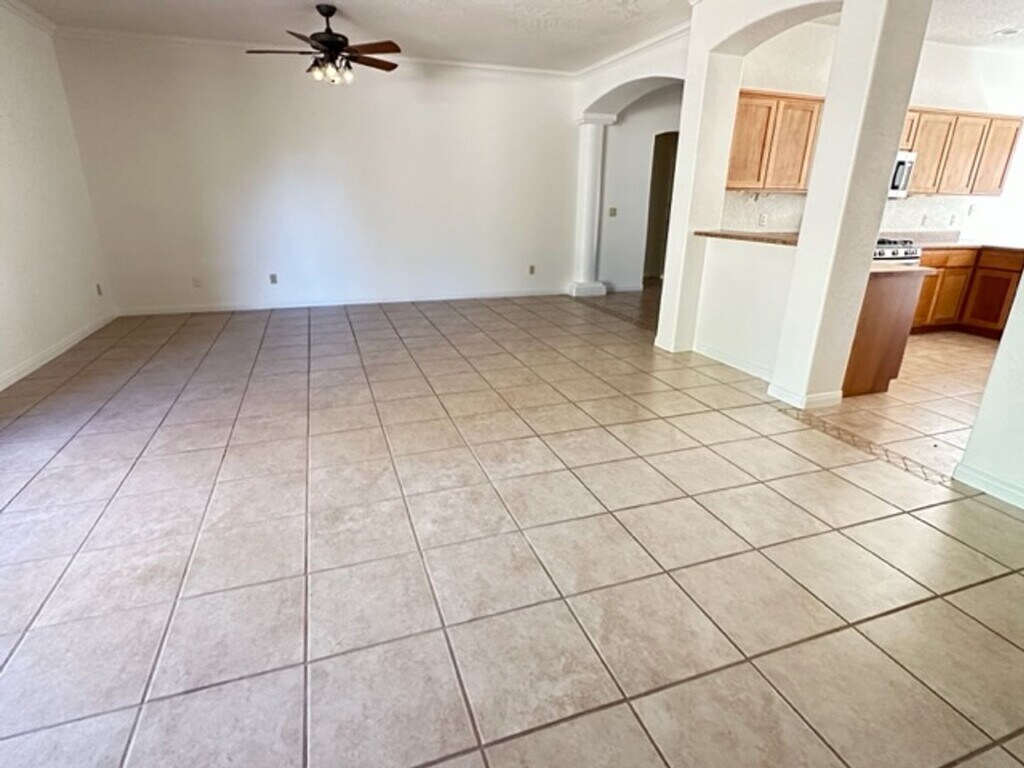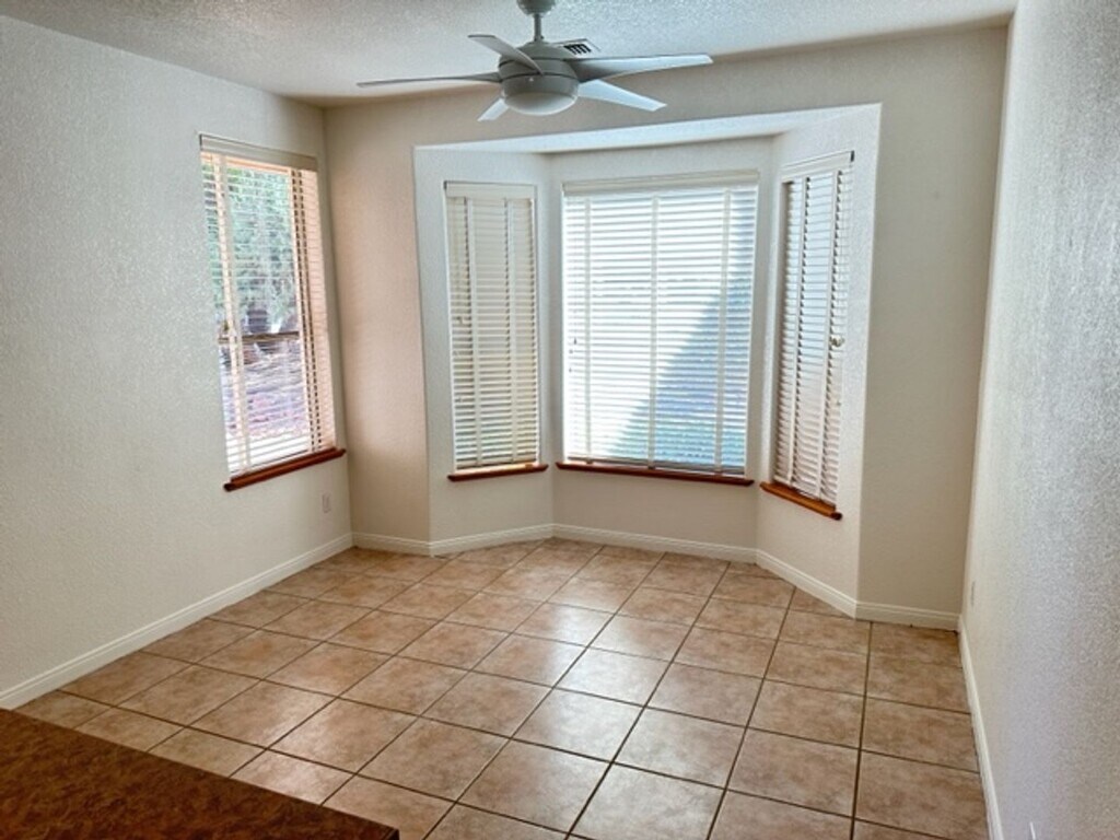 NICE SINGLE LEVEL FAMILY FRIENDLY HOME. LOTS OF LIVING SPACE AND TILE FLOORING THROUGHOUT. LARGE COMBINED LIVING/DINING AREA THAT FEATURES A GAS FIREPLACE AND DOUBLE SLIDING GLASS DOORS TO A COVERED PATIO AND PRIVATE FENCED YARD. THE EAT-IN KITCHEN INCLUDES A 5 BURNER GAS STOVE AND PLENTY OF CABINETS. LAUNDRY ROOM WITH FULL SIZE AAPPLIANCES. PRIMARY SUITE WITH SOAKING TUB, LARGE SHOWER, AND WALK-IN CLOSET. SPLIT FLOOR PLAN WITH TWO MORE BEDROOMS AND ANOTHER FULL BATH. THIS HOME ALSO FEATURES A CENTRAL VACUUM, REMOVABLE EXTERIOR SUN SCREENS AND A DOUBLE GARAGE. LANDSCAPE MAINTENANCE INCLUDED. SMALL DOG NEGOTIABLE. NO CATS. PLEASE CALL TO SCHEDULE AN AGENT SHOWING.