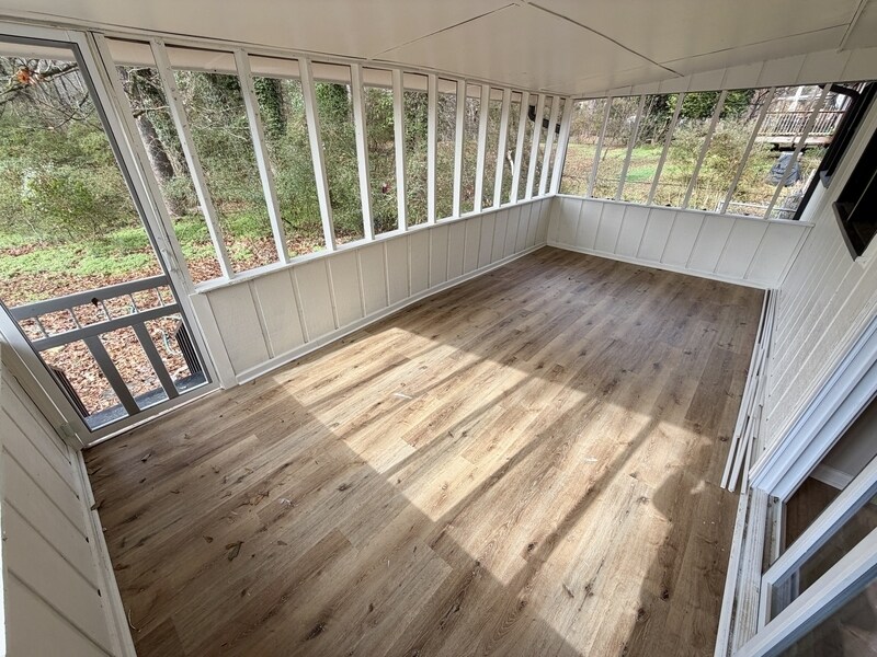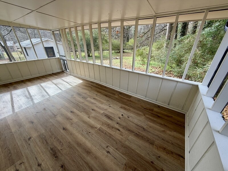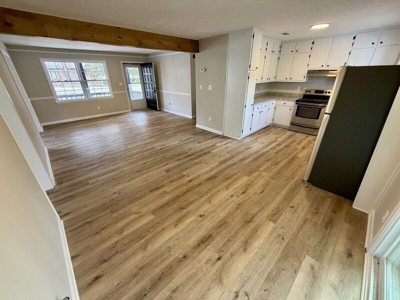Welcome home to 80 Glenn Burnie Drive, a beautifully renovated property offering modern finishes and functional space. This home has been updated from top to bottom and features durable LVP flooring throughout the open living areas, creating a cohesive and low-maintenance living space. The original garage has been thoughtfully converted into a spacious den, complete with large windows that bring in abundant natural light and a classic brick fireplace—perfect for a second living area, home office, or cozy retreat. The main living space flows seamlessly into the kitchen, which has ample cabinetry, brand-new granite countertops, and all new stainless steel appliances. Step outside to enjoy the screened porch overlooking a large, fenced backyard, ideal for relaxing or entertaining. The backyard also includes a storage shed for added convenience. Down the main hallway, you'll find two secondary bedrooms that share a full bathroom. The primary bedroom features its own private full bathroom and two closets, offering extra storage.