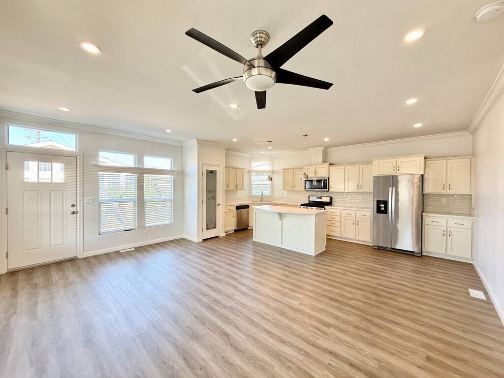 Welcome to your dream beach getaway at Surf City Beach Cottages! This stunning 2019 beach rental in Huntington Beach, CA, features 2 spacious bedrooms and 2 full bathrooms within 1,152 sq. ft. of thoughtfully designed living space. This ideal rental features two generously sized bedrooms, a laundry room with a washer and dryer, and a large living room. The elegant kitchen is equipped with stainless steel appliances, beautiful quartz countertops, ample countertop space, a large center island, and stylish shaker-style cabinets. High, flat ceilings adorned with crown molding and dual-pane vinyl windows create an inviting atmosphere throughout, while the large back patio offers countless opportunities for entertaining. Ideally situated within walking distance of the beach, this rental offers beach living at its finest, complemented by community amenities such as a clubhouse, a sparkling pool and spa, a fitness center, and a game room. Whether you're enjoying the relaxation on the back patio or taking advantage of countless beach activities, either way, your family and friends will be delighted to soak up the beach atmosphere. Priced competitively for a beach rental this close to the ocean, this is an exceptional opportunity to embrace the ultimate coastal lifestyle. Contact us today for our weekly open house schedule or to schedule a private tour!