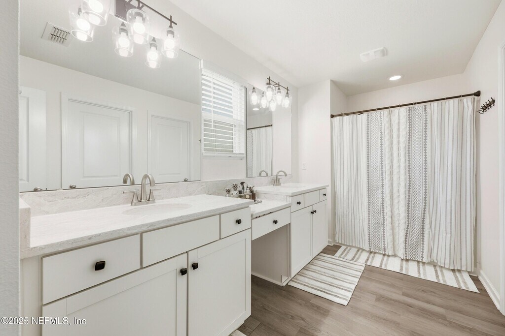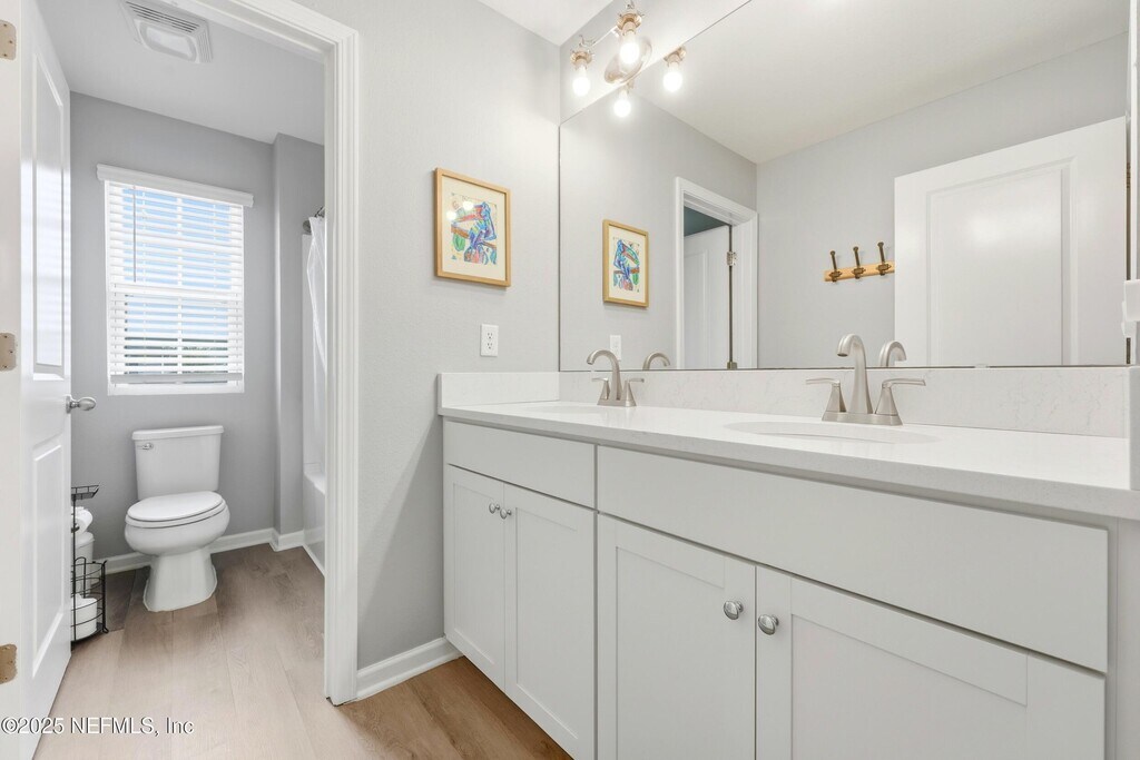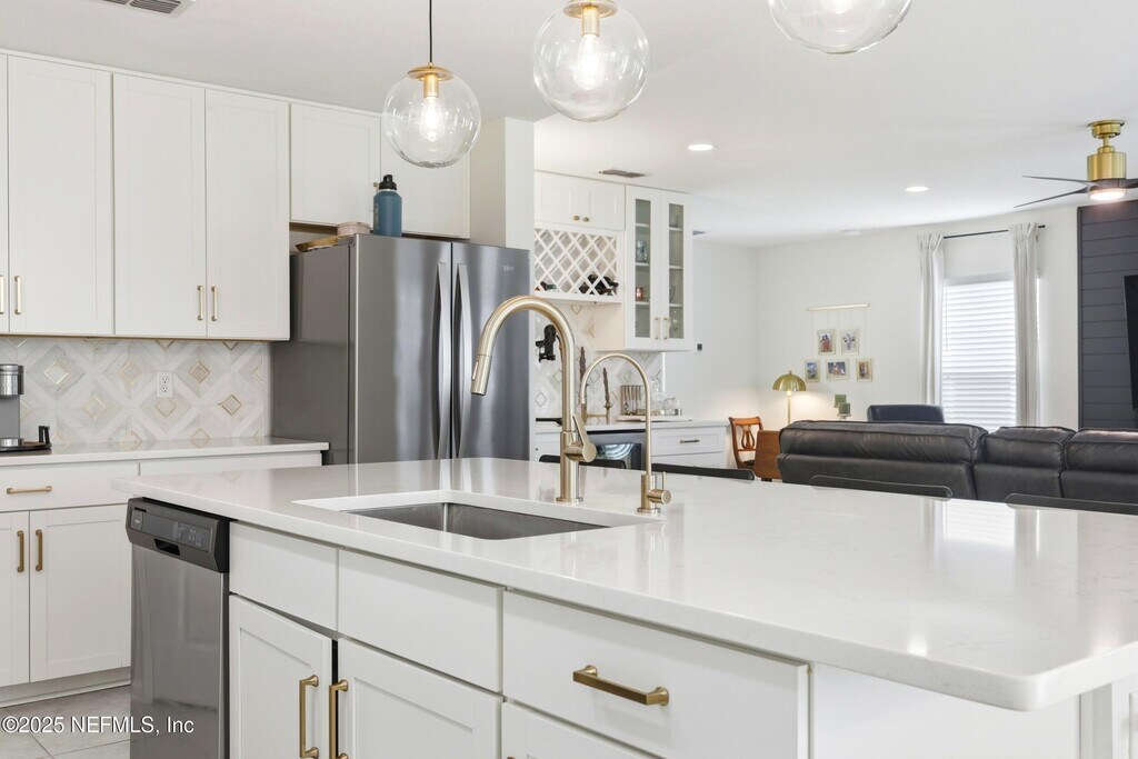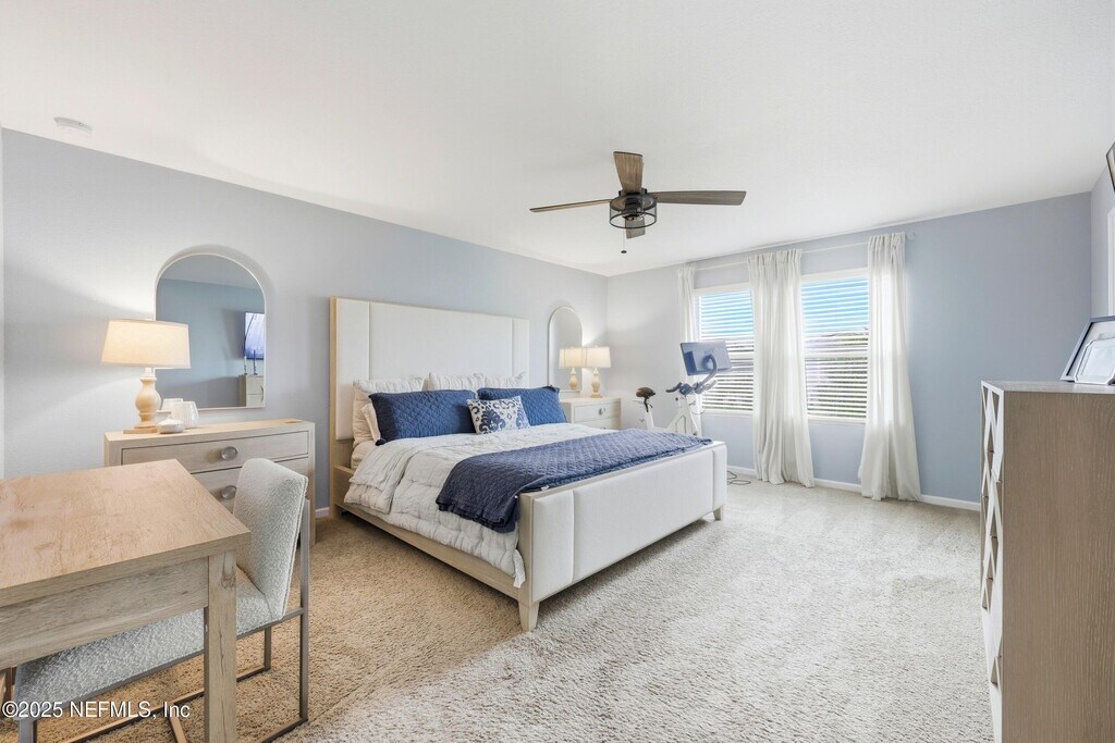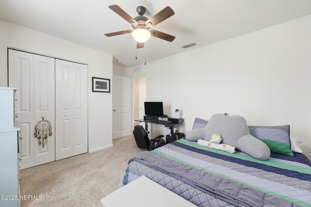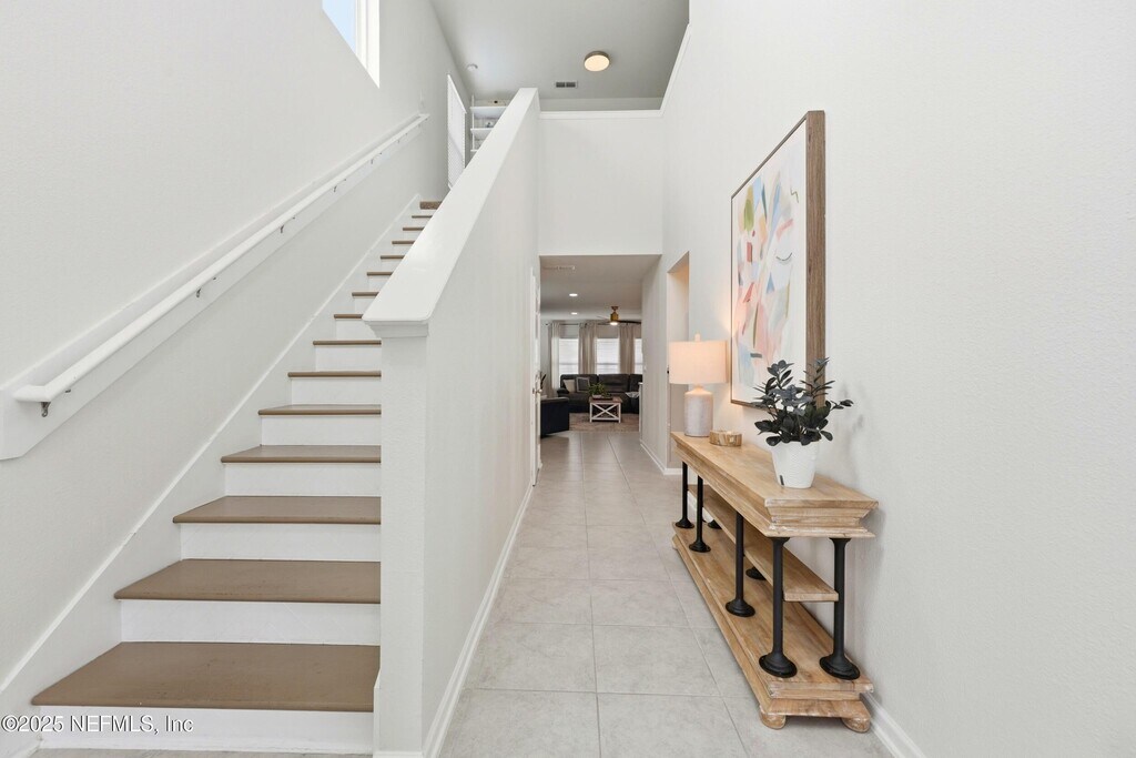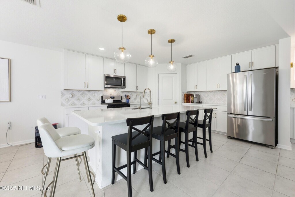 Welcome to this immaculate 4-bedroom,3-bathroom two-story home located in desirable St. Johns County! This stunning residence features an open-concept layout with designer touches throughout,including tile and hard surface flooring on the first floor. The chef's kitchen boasts quartz countertops with a large island,stainless steel appliances with a gas range,and 42' cabinets accented with bronze hardware. The first floor offers a convenient bedroom and full bathroom,while the upstairs includes the spacious primary suite with a huge walk-in closet,along with two additional bedrooms and another full bathroom. Enjoy the outdoors with a brand-new fenced backyard,covered patio,and extended pavered areaperfect for relaxing or entertaining. The community offers great amenities,including a pool and playground. Application Fee: $75 per person (18 and over) Processing Fee: $125 due from tenant at lease signing MLS# 2113166