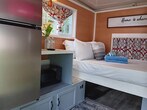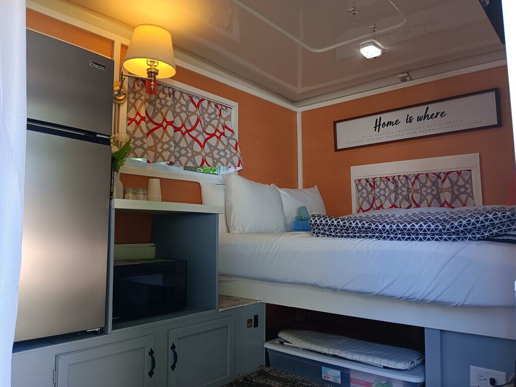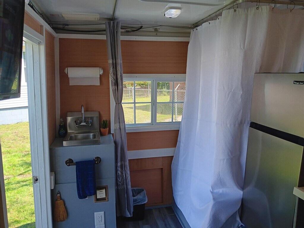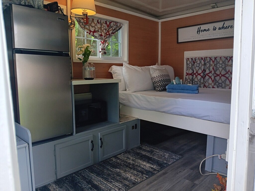 Welcome to The Tiny House at Belmont Park! Feel at home in this camper/RV converted into a tiny house in Cranston/Warwick's Belmont Park area. This tiny home camper is very tiny and accommodates a maximum of 2 guests. This is a minimalism-style accommodation, very similar to camping. It's equipped with 1 full-size bed, a tiny kitchenette/coffee station area, a tiny hand sink, and a wet bath combination with a camping-style toilet and shower combination. It also includes high-speed Wi-Fi and a Roku smart TV. Guests have access to a small fire pit with 1 table and 2 chairs outside of the tiny home. This tiny home is located on the host's property in the front yard area. Parking is on the street under the tree next to the tiny home. It's a great affordable option for a quick stay, 5 minutes to the airport and I-95, and 10 minutes to downtown Providence. There is a 10-gallon water tank for the tiny home, and running water is only accessible when temperatures are above freezing. Please use water conservatively and keep the heat on when inside the camper. There is no hot water, only cold water. A space heater is provided to heat the camper; please do not plug in another large heater as it will trip the breaker to the main home on the property. The housekeeping and maintenance team operates between 10:00 AM and 5:00 PM, Monday through Friday. Requests made outside these hours will require a work order and will typically be addressed within 24 hours. Supplies are provided sufficient for the number of registered guests. If additional cleaning or extra supplies are needed beyond the standard provision, guests may be asked to either supply these themselves or cover the cost for the additional service. Registration Number: RE.05586-STR [SI]