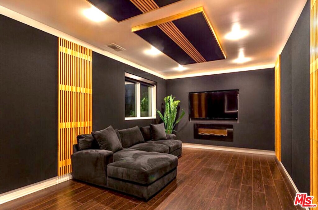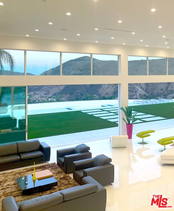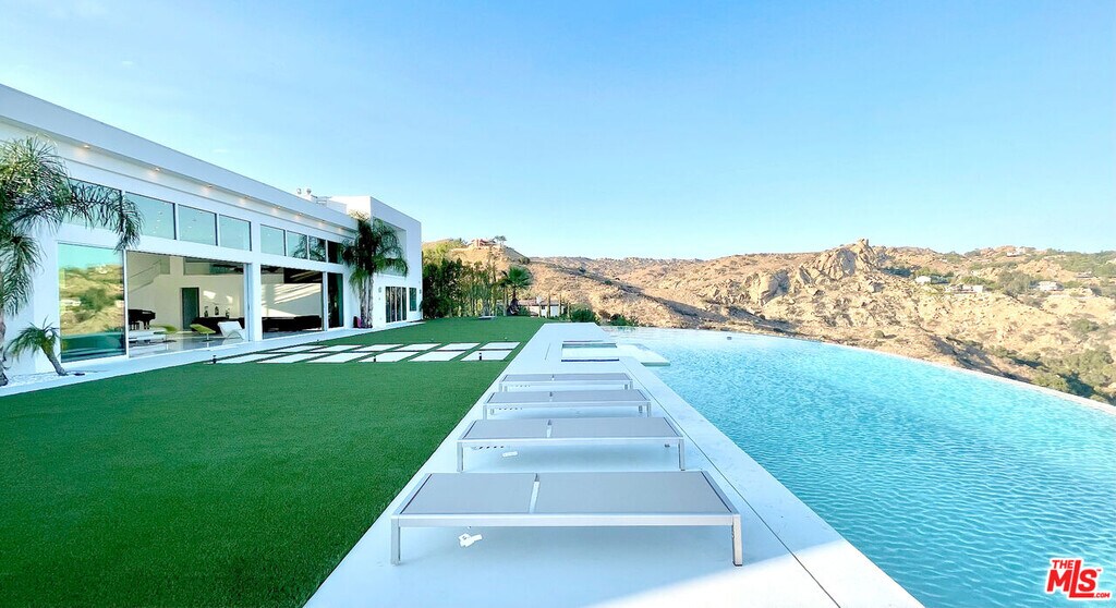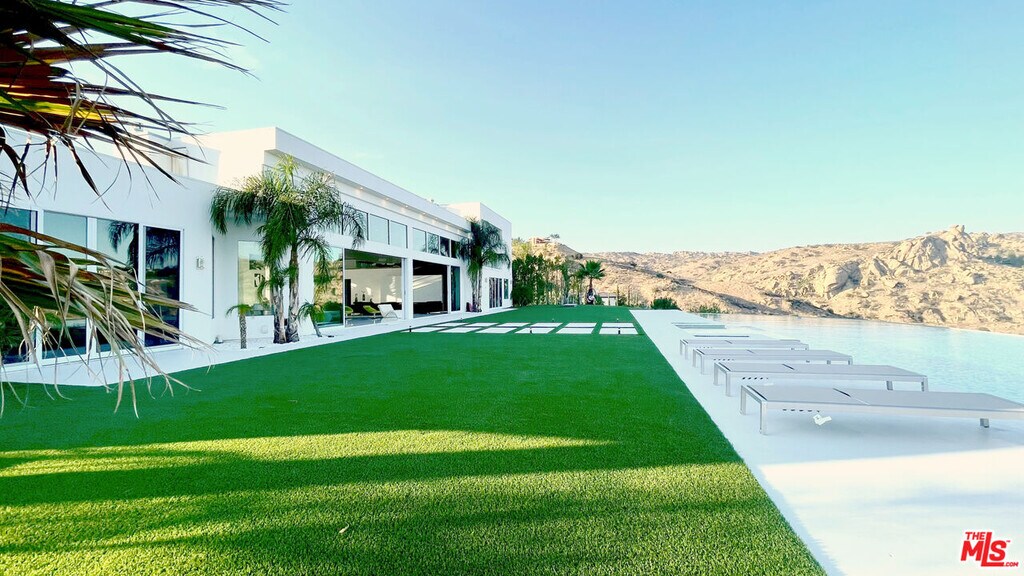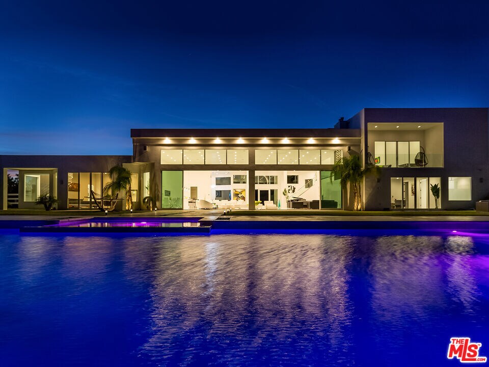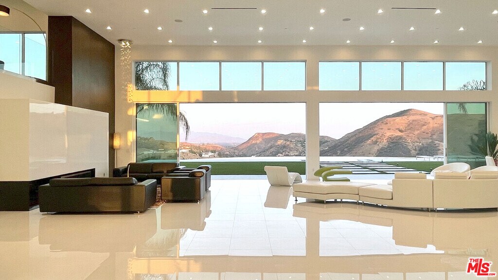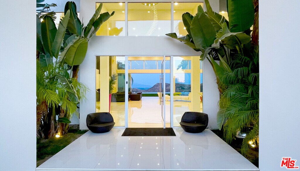 Perched on what feels like a private hillside retreat, this impeccably designed modern residence offers a rare blend of seclusion, sophistication, and sweeping views. The home showcases a state-of-the-art chef's kitchen featuring an oversized Caesarstone island, custom cabinetry, Miele cooktop, oven and speed oven, three warming drawers, a Thermador refrigerator and freezer, and a built-in espresso maker. Entertain in style in the formal dining room, highlighted by a dramatic, glass-enclosed, full-wall wine display. An oversized fireplace anchors the living space, while the primary suite rivals a five-star resort with a luxurious soaking tub, custom stone accent walls, sitting area, walk-in closet, and automatic shades. A theater-quality media room is fully equipped with a projector, advanced AV system, and acoustic treatment for an immersive experience. Additional highlights include soaring ceilings, energy-efficient windows and glass doors, and a true smart-home system wired for Wink and Nest. With ideal east-west exposure, the property invites you to unwind from the day and savor both the beautifully designed grounds and unforgettable sunsets. MLS# 26645961