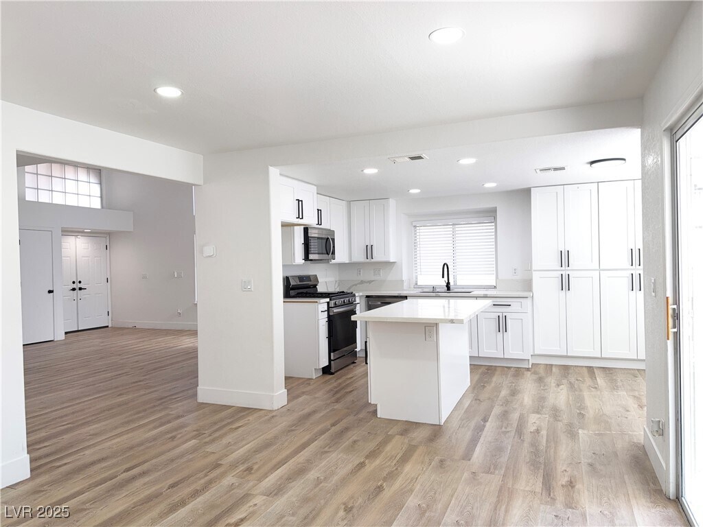 Welcome to this stunning home with soaring vaulted ceilings and a high-end modern design. This property has been fully renovated from top to bottom, featuring brand-new luxury vinyl plank flooring paired with sleek 5" modern baseboards. The kitchen shines with white shaker cabinets and Calcutta quartz countertops, creating a timeless and elegant look. Both bathrooms have been beautifully customized— the guest bathroom features a chic subway tile shower with a matte black trim kit, while the luxurious primary suite boasts a floor-to-ceiling tiled shower with a frameless European glass enclosure. **Will consider pets.***Monthly Base Rent : $2,500 ; Trash : $21 ;Total Monthly Rent :$2,521**
