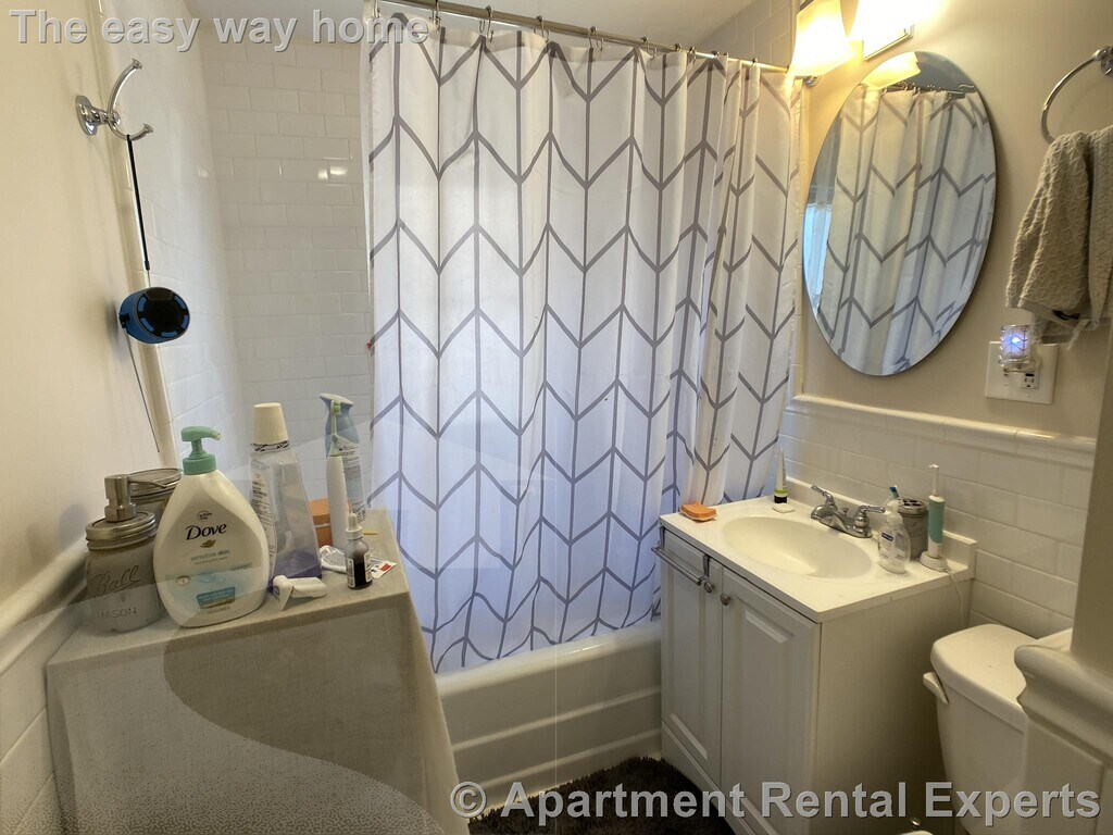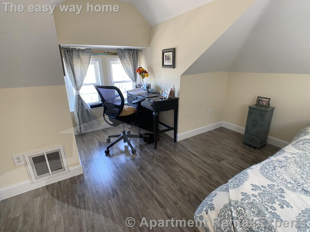 A luxury 4 bedroom 2 bathroom apartment on 2 levels in Somerville in the Ten Hills section next to Assembly Row. Recently remodeled, walking distance (6 minutes) to everything Assembly Row has to offer and a 15 minute walk door to door to the new Assembly T station. 3 car off street parking. These are 4 full bedrooms all quite large and 2 bedrooms have double closets and one has a private porch. 2 full bathrooms, one remodeled this year. High ceilings, living area is on 2 levels with skylights in one of the bedrooms. All floors are hardwood, shared back yard, Central AC and dedicated laundry with plenty of basement storage. Large open plan eat in kitchen with a living room and dining room. (Reference #176220)