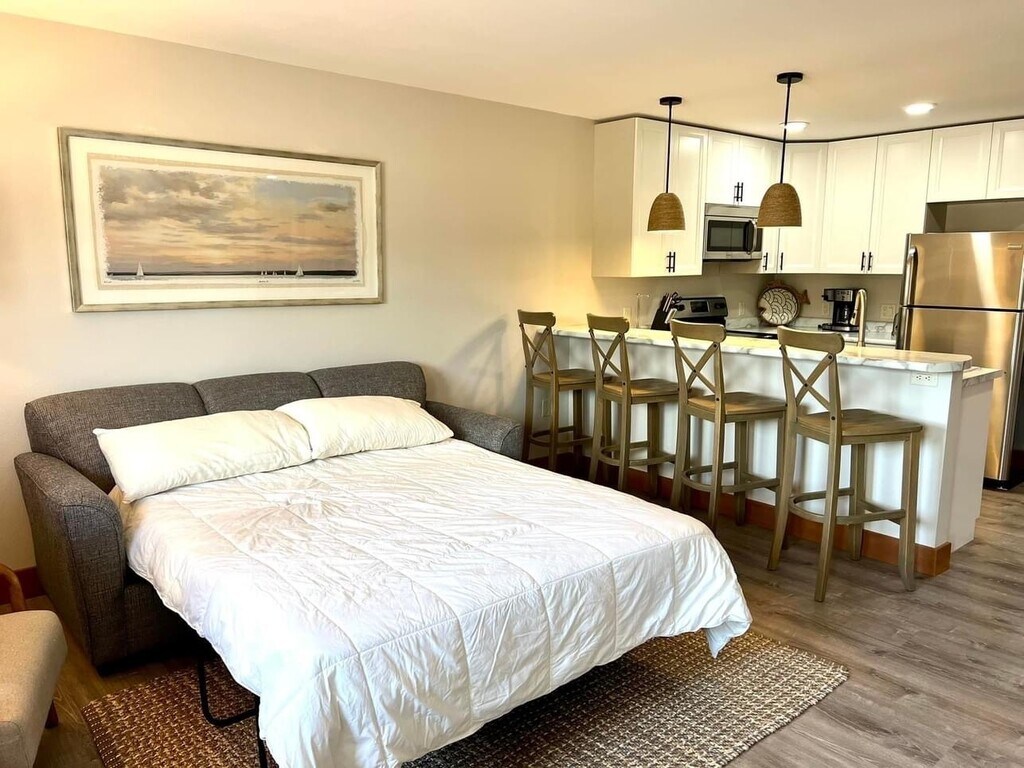 About this space...We offer monthly or yearly rentals. Keep it simple, relaxed and peaceful with this 1 bedroom condo. You will have easy access to the lake via the gentle west sloping lawn, carefree swims from the sandy beach, daily boating from any of the 5 docks and the perfect some ‘mores from the designated campfire area (pit). Check out our Landing page Formerly the Twin Oaks Resort, this unit has been fully renovated with a "relax your at the lake vib". This 1 bedroom/1bath/sofa sleeper, has a king size bed in the master bedroom, queen size sofa sleeper in living room, a fully furnished kitchen for entertaining, Sleeps 4 and includes use of lake frontage and day use of the docks (sorry, no overnight boat parking). Two parking spaces are provided with the condo. Guest access … is easy when you are in a great location. Across the parking lot, there is the A-Frame restaurant (full bar and kitchen) and the Lake House Event Center. There's a gas station, groceries, beer, wine and liqour (Four Seasons) across the street as well as a great pizza joint (Metigoshe Pizza). There's also a boat-in gas station on the northern part of the lake (Larson Marine). The Lake Metigoshe State Park is 1.2 miles a very short drive or a leisurely walk along the walking/biking path which circles the south lake. The Metigoshe Drive In are 2.0 miles and are next to the tennis courts and Lake House Gifts. Be sure to allow an afternoon or morning for a trip to visit the International Peace Garden and International Music Camp (20 mile) Other things to note Lake Metigoshe is 14 miles northeast of Bottineau, ND, located in the Turtle Mountain along the U.S./Canadian border and spreads over 1,544 acres with over 26 miles of shoreline. The lake has a maximum depth of 24 feet. Most of the lake is within the United States, with only the northernmost tip in Canada. The Lake is known as a four seasons area offering: swimming, canoeing, sailing, water-skiing and other water sports, camping, hiking, picnicking, downhill skiing, snowmobiling (over 250 miles of groomed trails), cross-country skiing, skating, sledding and ice fishing. The lake is noted for its northern pike, walleye and perch. The rolling hills, aspen forests and small lakes attract nature and photography lovers to the area. It is also the location of the Skinautiques waterskiing club which is the only international waterskiing club in the United States.