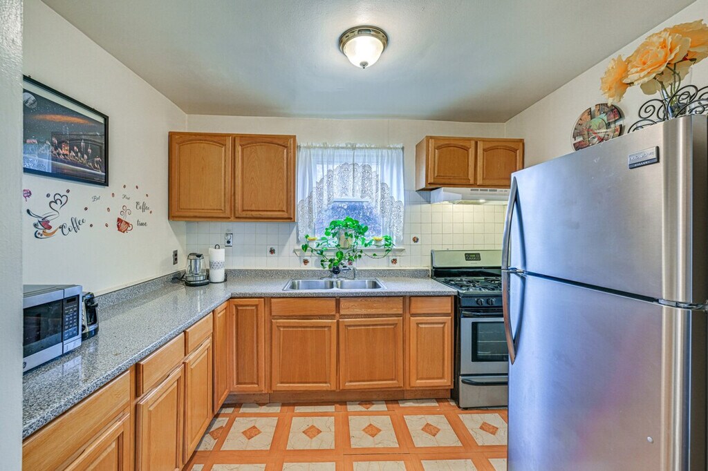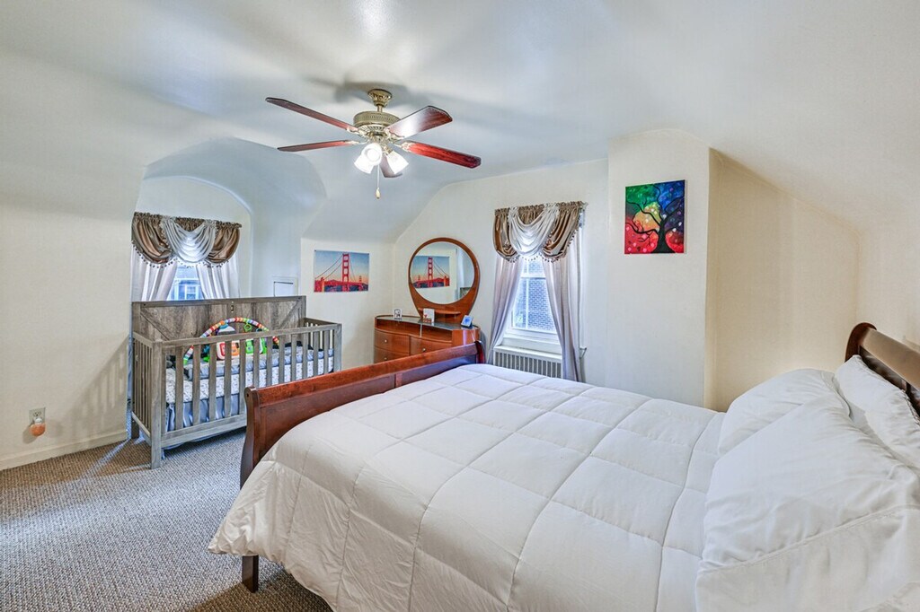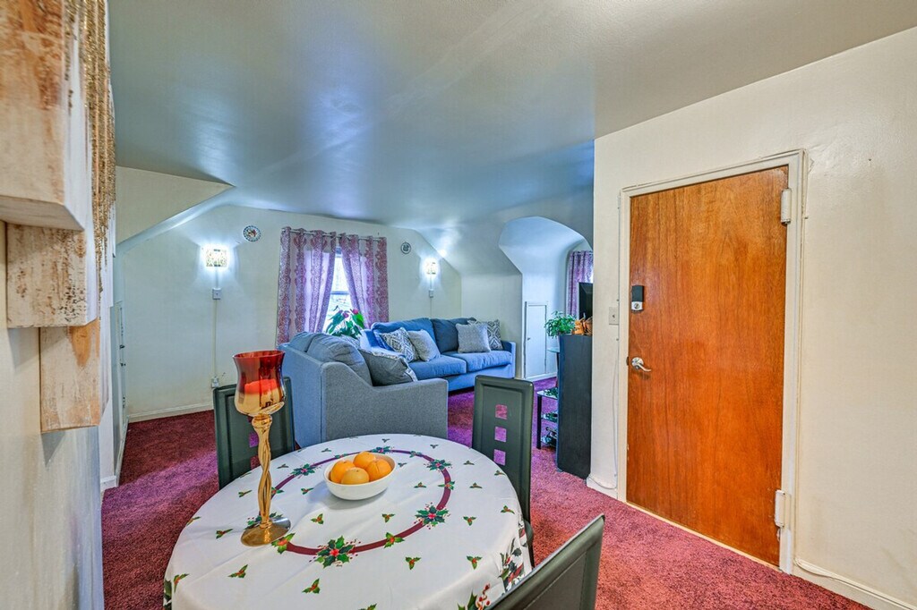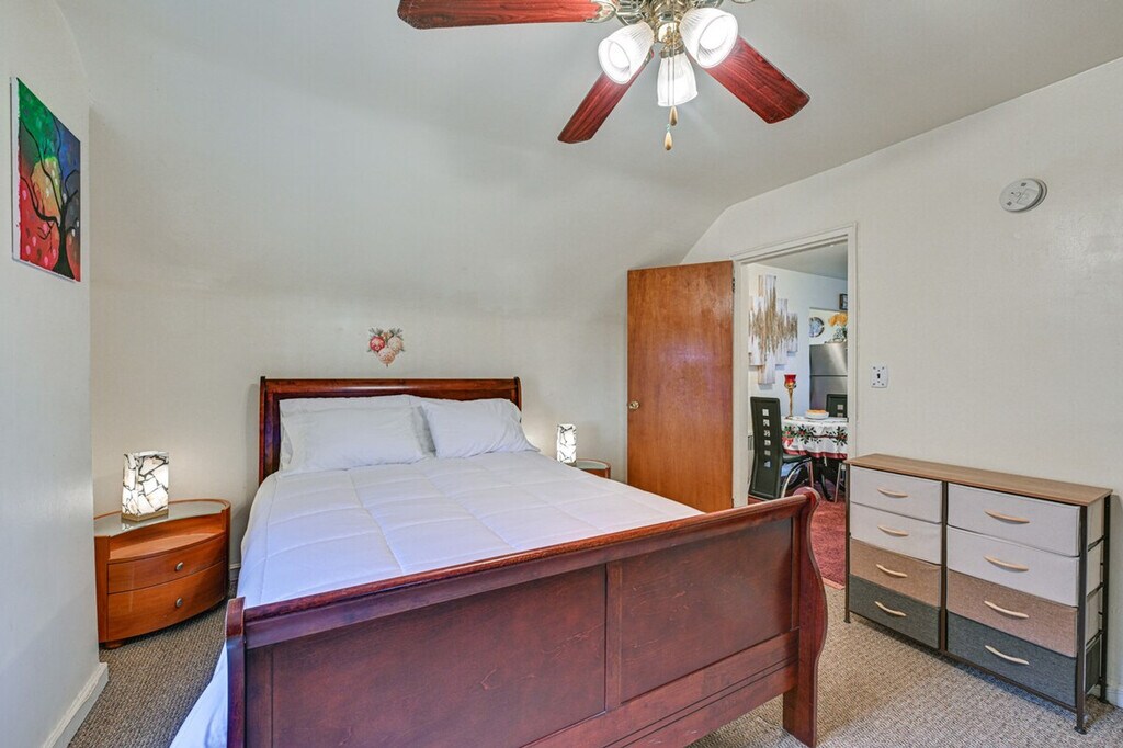 Experience the vibrant New York City area with this charming 1-bedroom, 1-bath apartment in Mount Vernon. Situated on the second floor of a single-story building, this apartment offers easy access to exciting attractions like the Bronx Zoo and New York Botanical Garden. Enjoy the convenience of nearby Yankee Stadium, the Mall at Bay Plaza, and iconic Manhattan sights such as Central Park, Times Square, and the Museum of Modern Art, all just a subway ride away. Feel at home in this thoughtfully designed apartment featuring a queen bed and a crib for additional sleeping arrangements. The living space includes a smart TV, dining table, and ceiling fan, while the kitchen is fully equipped with a refrigerator, stove/oven, microwave, toaster, dishware, flatware, and cooking basics. Additional fees and taxes may apply during your stay. Located just 0.5 miles from the subway station, this apartment provides easy access to explore the city. The Mall at Bay Plaza is only 2 miles away, and free street parking is available on a first-come, first-served basis. Enjoy the shared backyard and stay connected with complimentary Wi-Fi during your stay. The apartment is accessed via exterior and interior stairs, as it is located on the second floor. The property has a no-smoking and no-pets policy, and no events, parties, or large gatherings are allowed. Guests must be at least 25 years old to book. The homeowner lives on-site in a separate unit and may be present during your stay. For your safety, the property features four exterior security cameras that record video and sound when activated by motion, but do not look into any interior spaces. The apartment offers free Wi-Fi, making it remote work-friendly for those who need to stay connected. [SI]