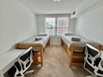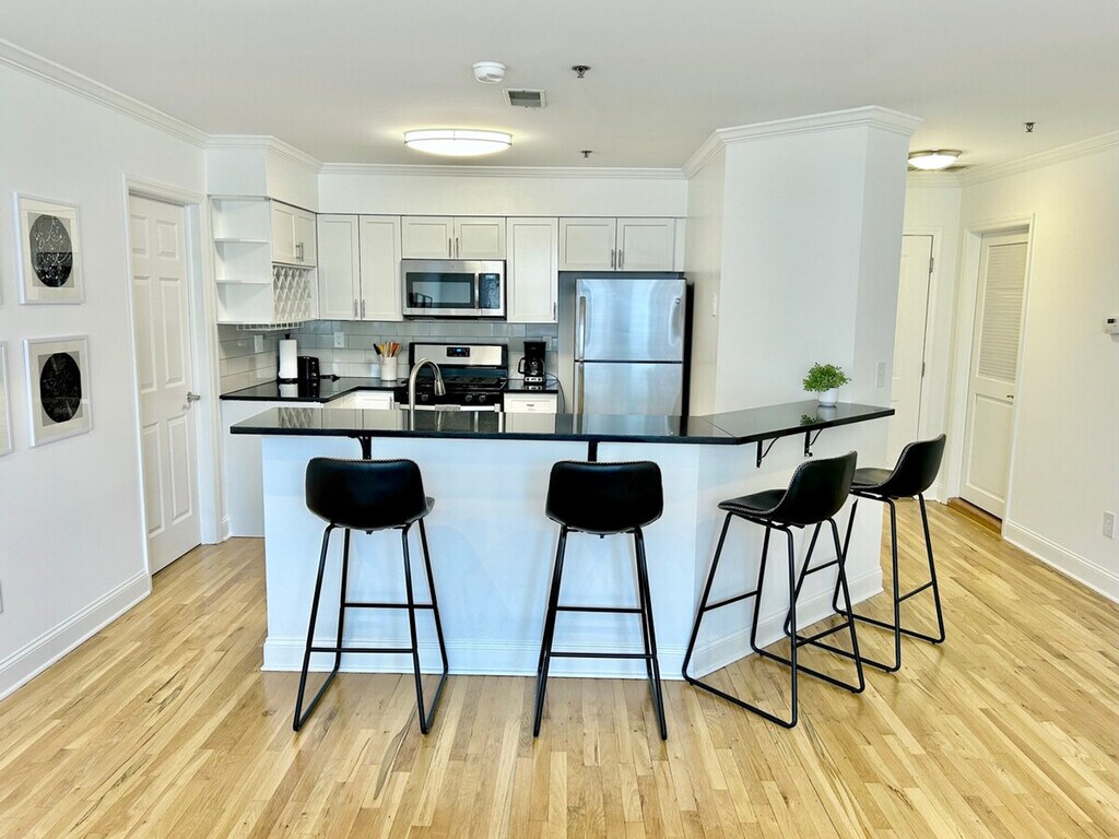 The advertised rate of $2,750/month is the lowest available price, based on a 30 day(s) stay with a move-in date of May 25, 2026. Rates vary depending on the duration of stay, season, and other parameters. For exact pricing and additional pricing components, please visit our website and enter your desired move-in and move-out dates. The rate is applicable when billed upfront; it can be higher if billed in multiple payments. Feel at home in this bright and airy apartment featuring an open-concept living and dining area and generously sized bedrooms with ample closet space. The luxury elevator building also offers a gym. This apartment features hardwood floors, in-unit laundry, central heating and cooling, and 1GB Wi-Fi. The kitchen is equipped with cooking and dining basics and essentials. Building amenities include a secure package system and a courtyard and outdoor space. A parking garage is attached to the building, but a parking spot is not included with the apartment. A free shuttle to the PATH is available during peak commuting hours. Located just steps from vibrant restaurants, cafes, parks, and easy NYC transportation, this apartment is perfect for families or professionals seeking a stylish and convenient city lifestyle. Residents must be respectful of the community, common spaces, and neighbors at all times and must follow all building policies. Quiet hours are from 10:00 PM to 8:00 AM, and noise must be kept to a minimum. Smoking is strictly prohibited anywhere inside the building. Residents are responsible for lost keys or fobs and must pay replacement costs. A valid government-issued ID is required for all residents. The third bedroom is a den without windows. Residents have the option to have two single beds or a king-size bed in each of the double rooms. The single beds will be combined with a topper to create the king. [SI]