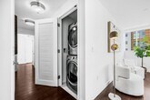 Now available for rent & immediate occupancy ! This stunning 2 bed/2 bath 8th floor corner unit offers a sophisticated blend of modern luxury, thoughtful design, and exceptional natural light. Spanning 1,300 square feet, this is the ONLY unit below the penthouse level with two private, south-facing balconies. Oversized windows in both bedrooms and the living area fill the home with sunlight, creating a bright & inviting atmosphere year-round. The interior is beautifully appointed with hardwood floors, quartz countertops, waterfall peninsula, and sleek cabinetry paired with premium SS appliances. Primary suite with WIC, features an en-suite PBR w/ double vanity, center soaking tub, and walk-in shower. Residents of Avora enjoy an resort-style amenities, including 24-hour doorman, concierge, a stunning outdoor pool and sun deck overlooking Manhattan, resident lounge, fitness center, children’s playroom, media room, and even a golf simulator. Set in the vibrant waterfront community of Port Imperial, Avora is steps from the NYC ferry, bus, and light rail; unit also includes one indoor parking space. Step into the luxury, waterfront lifestyle you’ve been dreaming of and schedule your private viewing today! Credit check required. Also listed For Sale.