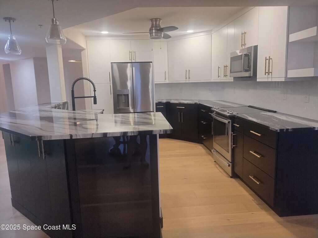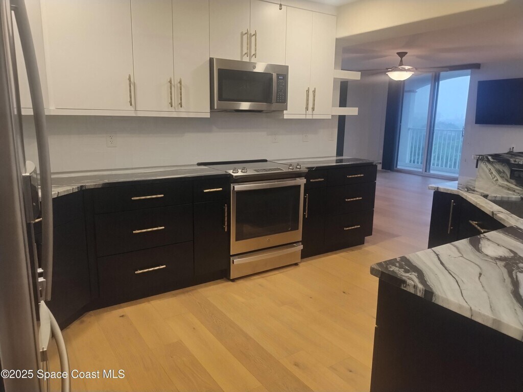 Welcome to the Harbor Del Rio Community,ideally situated in Central Merritt Island. Featuring under building parking space equipped with your very own electric car charger. Three bedrooms,each with private access to the expansive wrap-around balcony (with hurricane shutters for storm protection). The large open-concept design boasts laminate flooring throughout,fantastic,updated kitchen with new appliances. Primary bedroom offers dual closets,and an en suite with double vanities,a spacious walk-in shower,and a separate garden tub. The kitchen and bathrooms are finished with solid surface countertops,complemented by window treatments throughout and a generous laundry room. The community provides amenities such as a Pool/Spa,Gym,and Clubhouse. It's conveniently located by the NEW hospital being built and minutes away from shopping,dining,and the world-renowned Cocoa Beach.