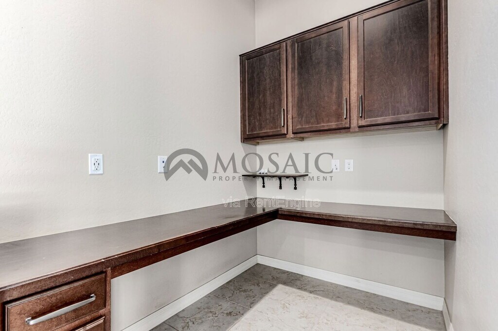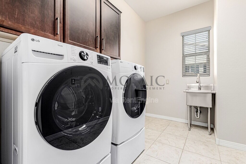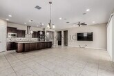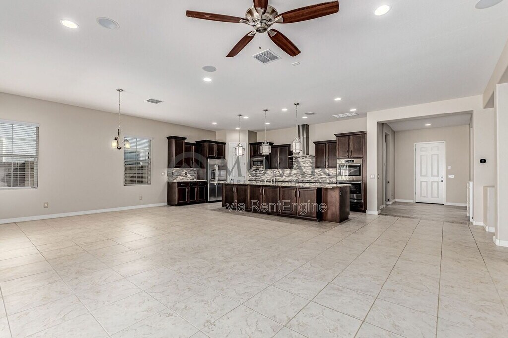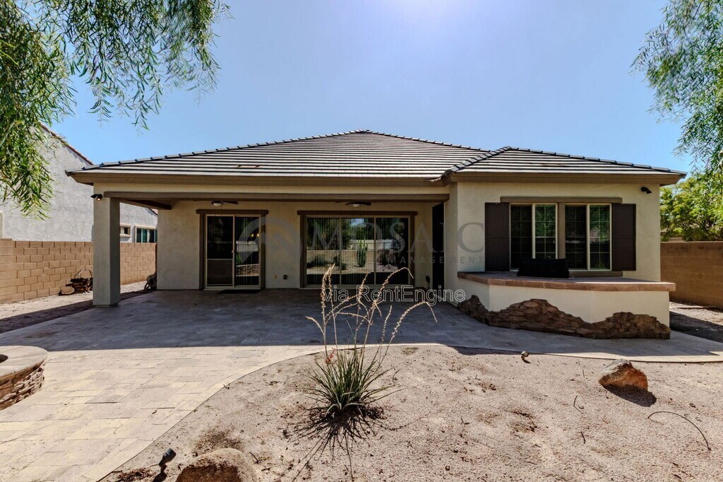 This exceptional three-bedroom, two-bathroom home offers 2,297 square feet of thoughtfully designed living space in a prime cul-de-sac location. The property sits gracefully next to a greenbelt, providing an enhanced sense of privacy and natural beauty that makes every day feel like a retreat. The heart of this home features a stunning kitchen with a large 13-foot island, upgraded granite counters, and premium stainless steel appliances. Soaring 9-foot ceilings and premium tile flooring create an atmosphere of spacious elegance throughout the main living areas. The primary bedroom boasts a generously sized walk-in closet with custom built-ins, ensuring organization meets luxury. Entertainment enthusiasts will appreciate the built-in ceiling speakers in both the great room and covered patio, complemented by an 86-inch wall-mounted television that conveys with the property. Premium lighting fixtures illuminate every corner, while Low-E windows with black shade screens on the west side provide energy efficiency and comfort. The outdoor space truly shines with its expansive backyard featuring travertine pavers, a covered patio with built-in barbecue, and a cozy firepit perfect for gatherings. Desert-style landscaping in both front and rear yards creates a low-maintenance, aesthetically pleasing environment that embraces the Arizona lifestyle. Practical amenities include a three-car garage, paved driveway, and brand-new washer and dryer. Recent exterior painting ensures the home presents beautifully from the street. This property seamlessly blends modern upgrades with comfortable living, creating an ideal rental opportunity for those seeking quality and convenience. Pets - Landlord approval required. General information: If pets are allowed at the home, there is a $30 per month / per pet fee. Pet approval is not guaranteed and some homes are not pet friendly. Approval varies based on type, size, breed, age and other relevant items. All occupants 18 years or older must apply and there is a $55 application fee per applicant (nonrefundable). Providing accurate information for employers and landlords as well as submitting all required documents upfront helps speed up the application process. A 12-month minimum lease term is required but longer lease terms are negotiable. Upon application approval and to take the home off the market, the lease must be signed by all tenants and the security deposit paid. Failure to do so within 48 hours may result in cancellation so that other, more serious applicants, can move forward. A $225 one-time lease preparation fee, the non refundable cleaning fee and first month's rent are due prior to move-in. Recurring monthly charges consist of monthly rent, 3% administration fee, $30 per pet rent (if applicable and does not apply to assistive animals), utility charge (if noted in the property listing) and other fees as noted in listing (HOA amenity fee, parking fee, etc). *All information including advertised rent and other charges are deemed reliable but not guaranteed and are subject to change. AMENITIES: * Gated Community * Play Areas By submitting your information on this page you consent to being contacted by the Property Manager and RentEngine via SMS, phone, or email.