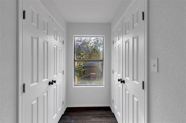 This adorable two-story home in Greenville, Texas is FULLY RENOVATED and located near Graham Park. It features three bedrooms and two bathrooms, with an open concept kitchen and living area. All rooms have ceiling fans and are spacious. The stairs with lovely iron work leads you to the primary bedroom on the second level. The bedroom is very large and has a balcony where you can relax in the morning and evenings with your favorite beverage. The home is also conveniently located near downtown Greenville, where you can enjoy visiting LANDON Winery, eating at local restaurants, and browsing cute boutiques. The backyard faces Graham Park and offers views of the pond and fountain. You can easily walk over to the park anytime and enjoy fishing or participate in local tournaments. The park also has a splash pad for kids, frisbee golf, a dog park, and many other activities.