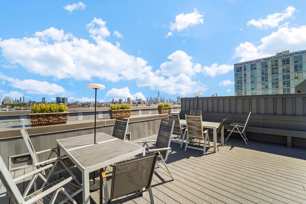 Move-in right away! Luxurious 2-Bedroom, 2-Bath Condo at MetroStop – Unit #602 Welcome to MetroStop, a modern steel and concrete building in Midtown Hoboken that offers the perfect blend of style, comfort, and convenience. This luxurious 2-bedroom, 2-bath condo, located on the sixth floor, features a thoughtfully designed, open-concept floor plan ideal for modern living. Apartment highlights: Open-concept living: The spacious layout features gleaming Brazilian cherry hardwood floors and floor-to-ceiling windows that fill the space with abundant natural light. Gourmet kitchen: A designer kitchen is equipped with stainless steel appliances, granite countertops, a glass tile backsplash, and a large breakfast bar for casual dining and entertaining. Two large bedrooms: The primary bedroom includes a custom walk-in closet, while the second bedroom also features custom closets. Two modern bathrooms: The spa-like master bathroom offers a soothing Jacuzzi tub, and the second full bath is equally well-appointed. Private balcony: Step out onto your private balcony to enjoy your morning coffee or evening drink. In-unit laundry: A full-size washer and dryer are included in the unit for your convenience. Deeded parking: The rental includes one full-size deeded garage parking space. Other features: Enjoy central air conditioning and custom lighting throughout the apartment. Building amenities: As a resident of MetroStop, you will have access to a wealth of premium building features: Fitness center: Stay active in the fully equipped exercise room. Rooftop deck: Take in breathtaking NYC skyline views from the common rooftop deck, complete with seating areas. Residents' lounge: Relax and socialize in the beautifully furnished residents' lounge. Virtual doorman: Benefit from the added convenience and security of a virtual doorman. Secure package room: Never miss a delivery with the building's secured package room. On-site cafe: Grab your morning brew from the cozy cafe located in the building. Prime location: The MetroStop building is perfectly located for effortless commuting and accessing the best of Hoboken. Transit: The 9th Street Light Rail station is located right downstairs, offering easy access to the PATH and NYC. Shopping and dining: Enjoy proximity to local shops, restaurants, parks, and the Monroe Center. Nearby attractions: Explore the waterfront, walk to ShopRite, and enjoy the neighborhood's excellent restaurants and nightlife. Pets: Pets are okay with owner approval. PARKING for an additional $300.00 per month.