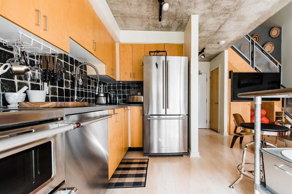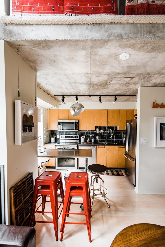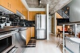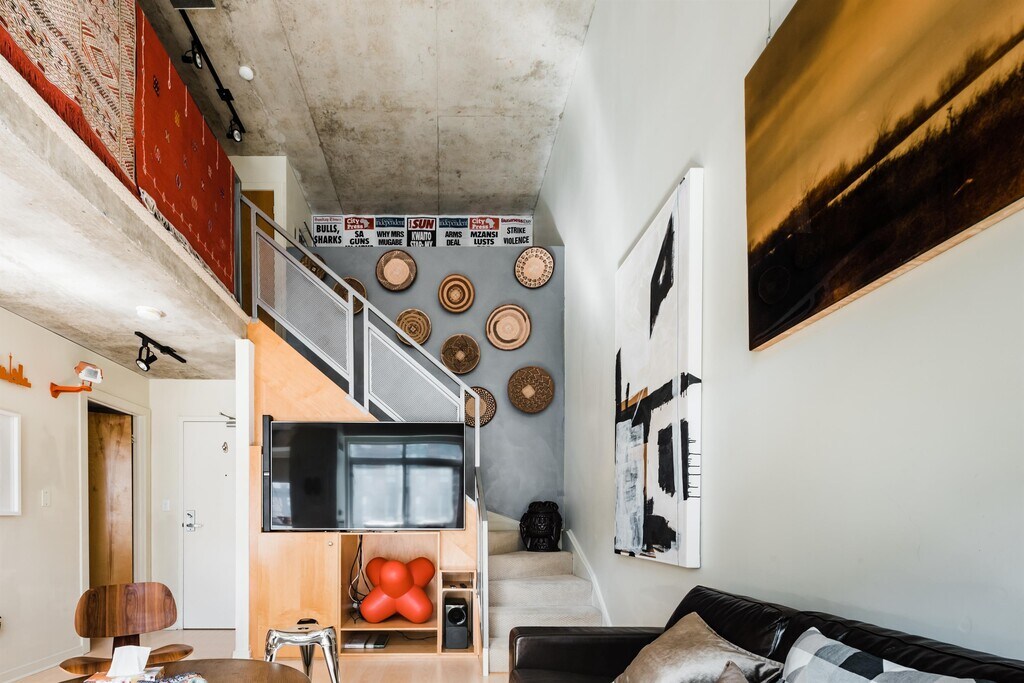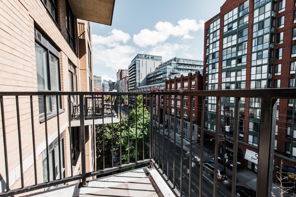 Located in the heart of the fashion and entertainment districts, this trendy and spacious 1 bedroom plus den with open loft is a must-see. The unit features 2 stories, soaring 16ft ceilings, double high floor-to-ceiling windows, and exposed concrete ceilings. You'll love relaxing on your private balcony overlooking King Street West. You'll appreciate the convenient location, with a 15-minute walk to the waterfront, a 15-minute walk to Trinity Bellwoods Park, and public transit at your doorstep. Building amenities include a fitness room, sauna, and recreation room. Street parking is available. Don't miss this opportunity to live in the heart of it all. No Parking - Paid Monthly Parking across the street for $380.00 Per Month