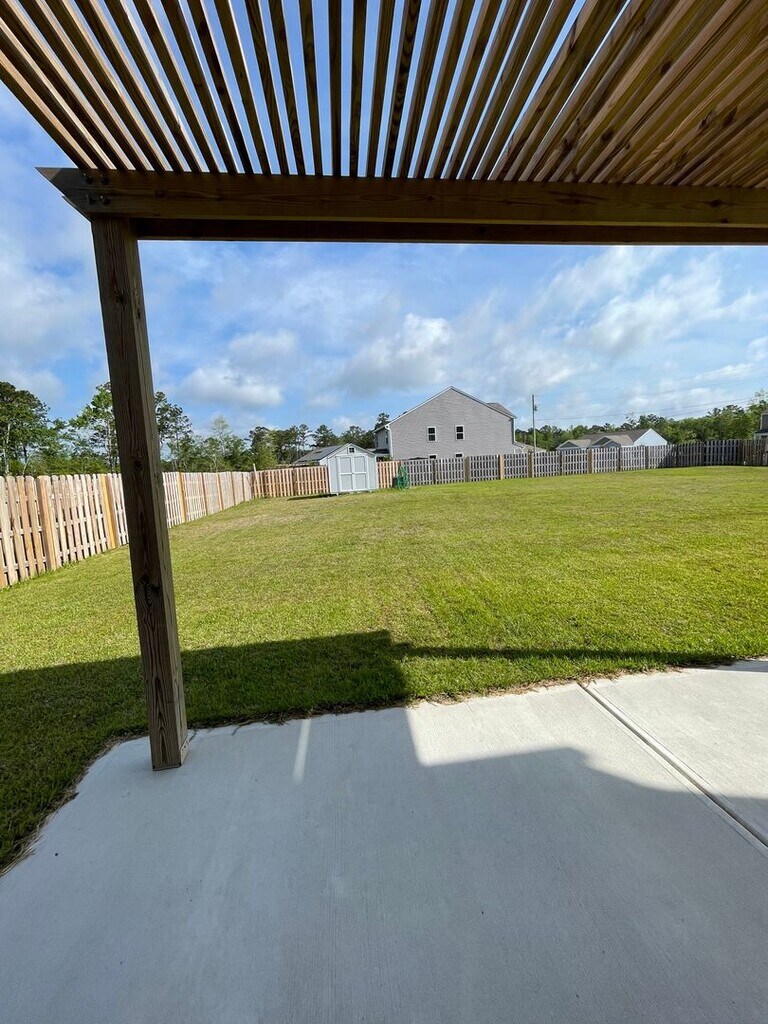 Must see property nestled in The Preserve at Morris Landing in Holly Ridge! With 4 bedrooms, 2.5 baths, this home features an open concept living room and kitchen, complete with pantry. You'll also find a convenient half bath and a sliding glass door that opens to the fully fenced backyard with a pergola. Upstairs, you’ll find all the bedrooms along with the laundry room. The spacious primary suite includes a separate shower and soaking tub, and dual vanities. There are three additional bedrooms, each with generous closet space and shared bathroom. Schedule your showing today! **All residents are enrolled in the Resident Benefits Package (RBP) for $55.95/month which includes liability insurance, credit building to help boost the resident's credit score with timely rent payments, up to $1M Identity Theft Protection, HVAC air filter delivery (for applicable properties), our best-in-class resident rewards program, on-demand pest control, and much more! More details upon application.**