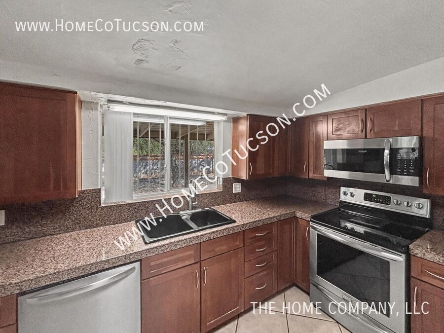 This charming 1950's brick home is ready for occupancy now! Beautifully updated, this three bedroom home has a 4th bedroom/office/flex space in the back yard. This home offers an updated interior and plenty of private outdoor space with mature trees. Comfortably blending modern conveniences with historic charm, this property is sure not to disappoint. Enjoy the cool air conditioning, unique fireplace or relax in the large screened patio. Once inside you will enjoy tile and wood-like flooring throughout, lots of natural light in every room, and updated kitchen with stainless appliances and granite tile countertops. This home offers amply off street parking, two car garage and fenced yard. All of this situated in a convenient Tucson neighborhood. This home is a rare find! Don't miss out on this opportunity. Occupant responsible for all utilities. SECTION 8: NO UTILITIES: Tenant responsible for all utilities PETS: Subject to owner approval VIDEO TOUR: Explore this property with our comprehensive video tour to get a closer look at every detail before scheduling an in-person visit. **Walking Tour** **Virtual Tour** UTILITIES: Tenant is responsible for all utilities and trash . To review our rental qualifications, apply, view additional video tours, or schedule a showing, please visit: **Website: ** For questions during business hours, please contact us: Text: Email: QUALIFYING REQUIREMENTS: Email for a full disclosure of fees and to review a blank lease document. Experience the difference with The Home Company! Visit to schedule a showing, apply, view additional media for each available property, and review detailed qualifying requirements and information. Proudly setting the standard for property management in Arizona, The Home Company is dedicated to improving the rental experience for both tenants and landlords. As an Equal Opportunity Housing provider, we are committed to fairness and transparency in every interaction. All our agents are licensed Real Estate Professionals, delivering knowledgeable support and exceptional service. Please note, The Home Company, LLC exclusively represents the Landlord in all property-related matters. As the Landlord’s authorized Agent, our responsibility is to act in their best interests throughout the rental process. Call: (Leasing Department, Monday–Friday, 10 AM–4 PM) 2 Car Garage Covered Patio Detached Flex Space Extra Parking Area Large Fenced Yard One Story Sw Gas 1 Tenant Is Responsible For All Utilities And Trash Tenant To Contact The Following Utilities To Establish Service: Tucson Electric Power Tucson Water Washer/Dryer Hook Up