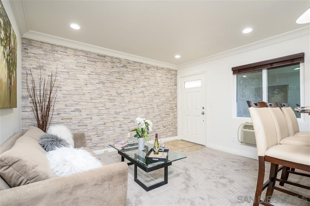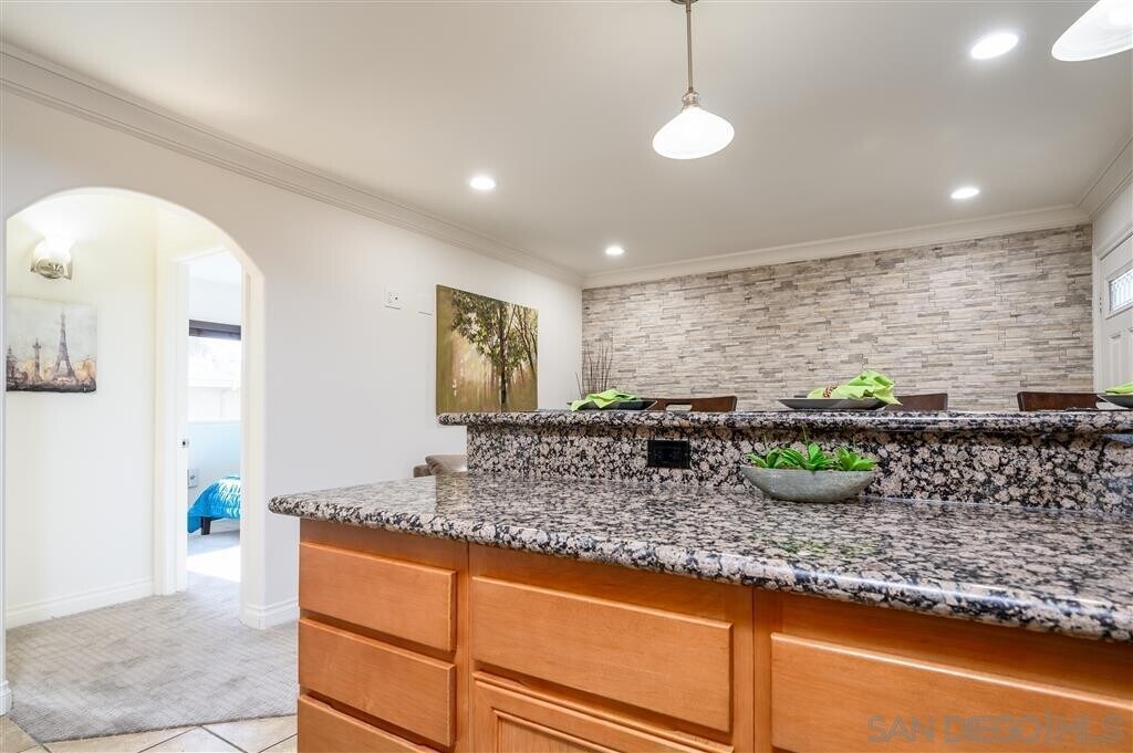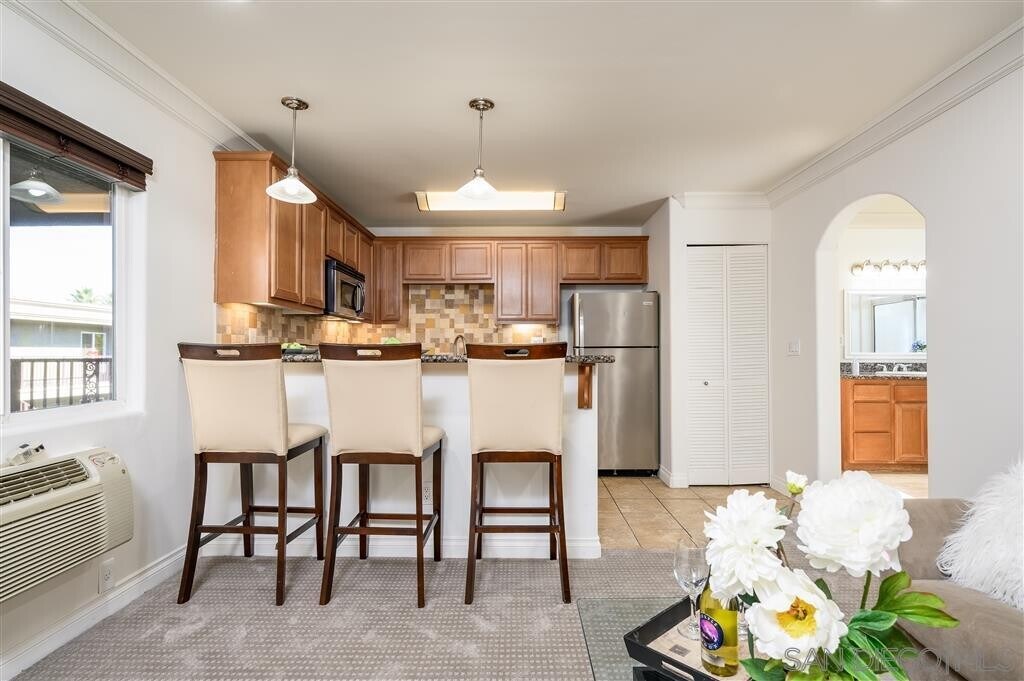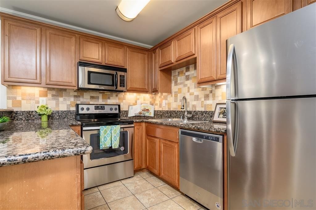 Beautiful condo in the gated community of Villa Grigio in El Cajon. This one bedroom/one bath unit has a newly painted interior, energy efficient stainless steel kitchen appliances, granite counter tops, kitchen back splash, crown molding, and a new stackable washer + dryer. Complex has an attractive pool and tiki style barbecue area that makes already beautiful community truly charming.