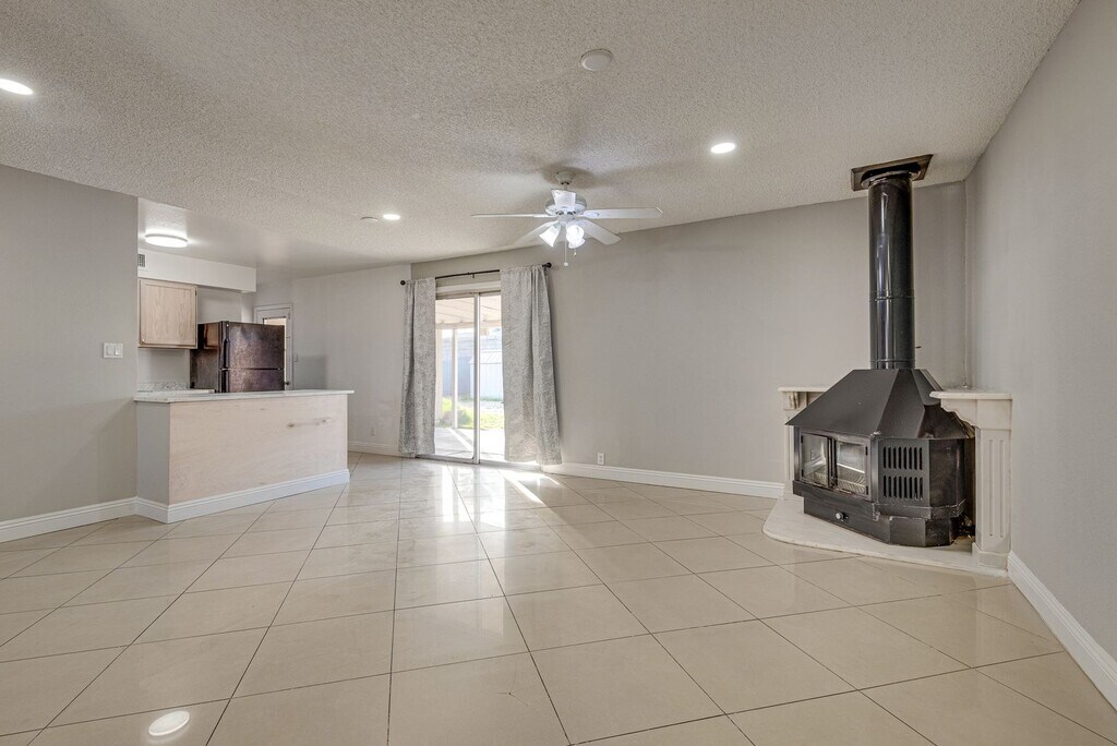 Welcome to 800 Slayton Drive, a well-maintained single-story home offering comfortable living in a convenient Las Vegas neighborhood. The exterior features a classic desert landscape with mature trees, a fenced front yard, and large backyard with storage shed. Inside, you’ll find bright, open living spaces with neutral tones, tile flooring in the main areas, and abundant natural light. The living room is highlighted by a unique freestanding fireplace, adding warmth and character, while sliding glass doors create an easy flow to the backyard—perfect for indoor-outdoor living. An open kitchen and dining area offer functionality and connection, and additional rooms feature wood-style flooring and thoughtful built-ins. With a spacious driveway, backyard access, and a clean, move-in-ready feel, this home is a great opportunity to enjoy comfortable living with room to make it your own.