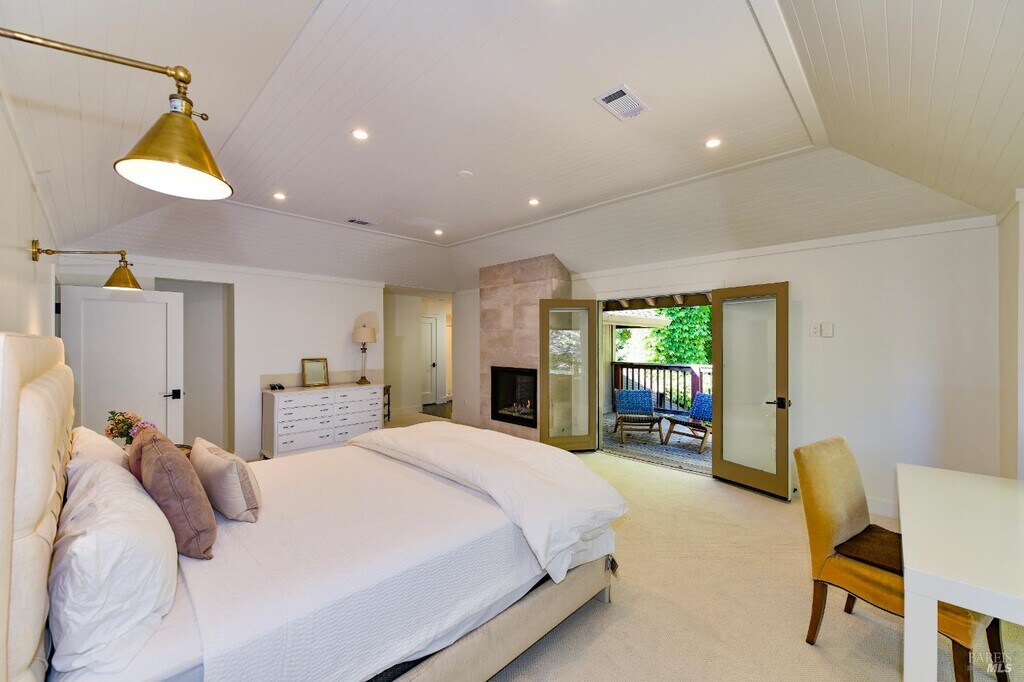 Furnished, Tudor-style home with ample space for comfortable living, nestled in the picturesque town of Saint Helena. The interior features have been remodeled, showcasing a modern and open concept design. Each bedroom is a sanctuary, complete with its own ensuite bathroom, fireplace, and private deck. Amenities include a chef's kitchen with wine fridge, living room, formal dining room, mud room, gym and home office. Formal gardens, a pool, and mature trees surround the home, creating a peaceful oasis. Located just a short distance from downtown Saint Helena. Contemporary Living, with European Flavor and Charm! MLS#325091375