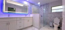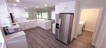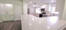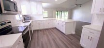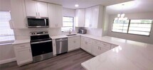 Price Negotiable: First Month Rent and Security Deposit. The heart of this home is its beautifully designed kitchen, featuring 42" white wood shaker cabinets, sleek quartz countertops, and stainless steel appliances. This stylish kitchen seamlessly flows into the great room, which boasts vaulted ceilings for an open and airy feel. The main living areas are graced with warm wood laminate flooring, adding a touch of sophistication. Perfect for entertaining, the great room includes a convenient wet bar. This inviting space is ideal for relaxing and enjoying the serene golf course views. The master suite offers luxury and comfort with a generously sized walk-in closet and an oversized bathroom, complete with shaker cabinets, quartz counters, and a glass-enclosed shower.