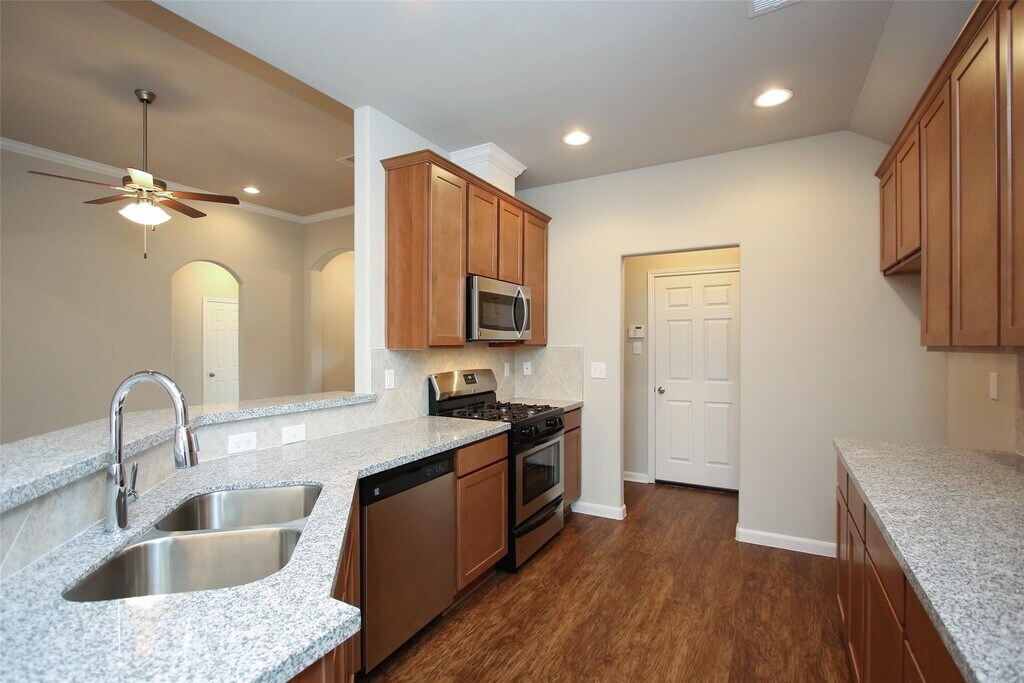 Gorgeous single-story home near Medical Center,Downtown Houston,U of H,and TSU. Three bedroom and two bathrooms. Kitchen with maple stained cabinets,stainless steel appliances,granite countertops. Laminated floors and ceiling fans in carpeted rooms. Principal bathroom with garden tub,separate shower,double sinks,two huge closets. Enjoy the sunny breakfast area that opens to the family room with fireplace. Prewired alarm system,covered patio,fenced backyard. No section 8. Tenant responsible for grass maintenance and utilities. Bring your refrigerator,washer,dryer,and furniture to move in by December 5th. A perfect place to call home! MLS# 62014605