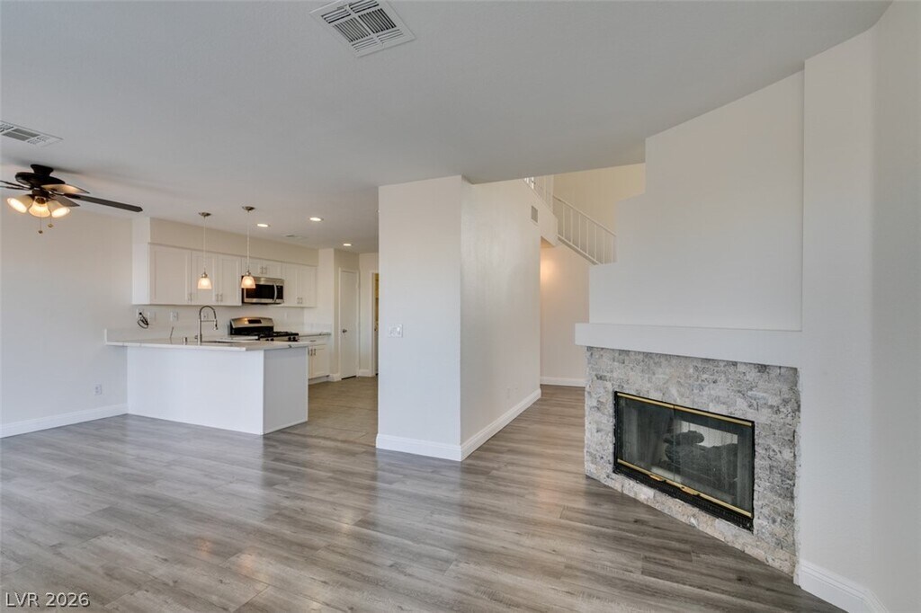 Welcome to this charming 3-bedroom home in the heart of 89123. Step inside to a cozy living room featuring a warm fireplace, perfect for relaxing evenings. The space flows seamlessly into the kitchen, complete with all appliances and generous counter space for cooking and entertaining. Upstairs, you’ll find three spacious bedrooms offering comfort and privacy. Outside, the backyard boasts a low-maintenance desert landscape with plenty of room to customize—ideal for enjoying the Las Vegas sunshine. This home offers comfort, convenience, and potential in a great location.