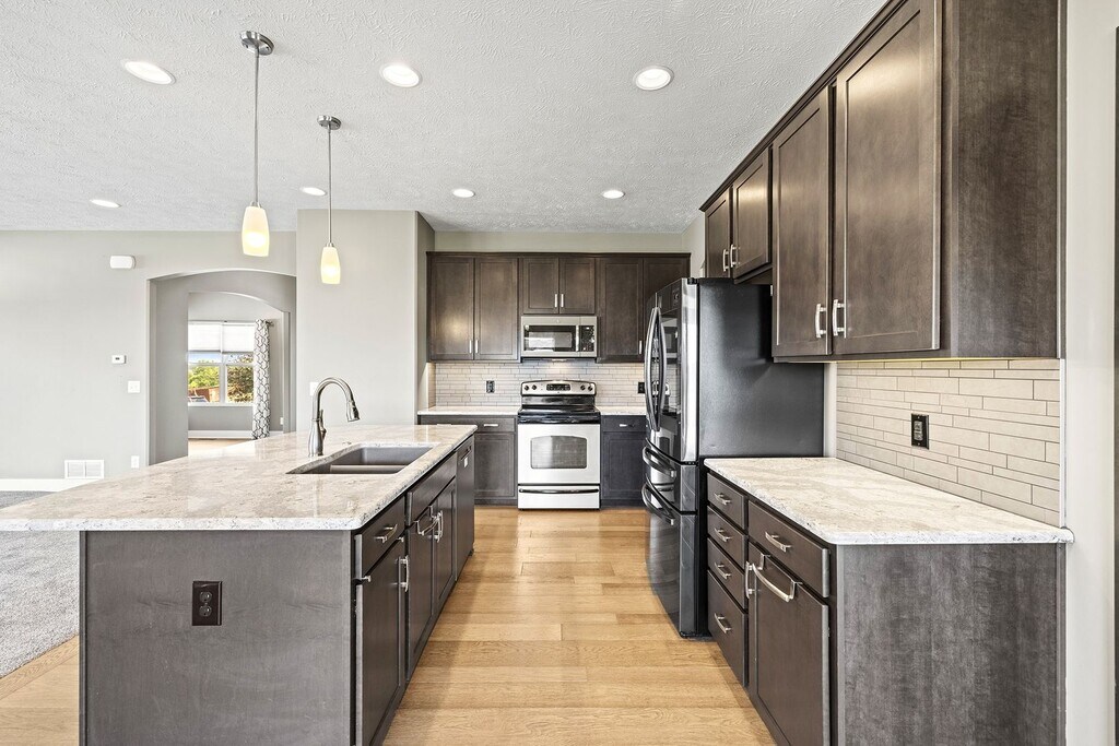 This charming 4 bedroom, 3 1/2 bathroom offers spacious living across two well designed stories. This thoughtfully laid out floor plan with ample room for relaxation and entertaining. You'll love the gorgeous kitchen with beautiful quartz countertops & gigantic pantry. 2nd floor bedroom sizes will impress! The Primary suite shines with tray ceiling, soaker tub, walk-in shower, walk-in primary closet connect to the laundry room for quick and convenient access. Finished lower level offers a great rec room for additional entertainment. Outside you will enjoy a covered patio to relax and unwind in this spacious fenced in backyard. Call today to schedule your showing.