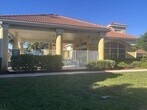 Single story 4 bedroom home, with large porcelain tile through most of the home, looks elegant, well cared, with open layout. Lovely white tiles throughout. Open kitchen. Enclosed porch. Community offers 3 heated pools, spa, exercise room, tennis courts, racquetball .Someting for everyone in the familly. 2 car garage.Great gated community